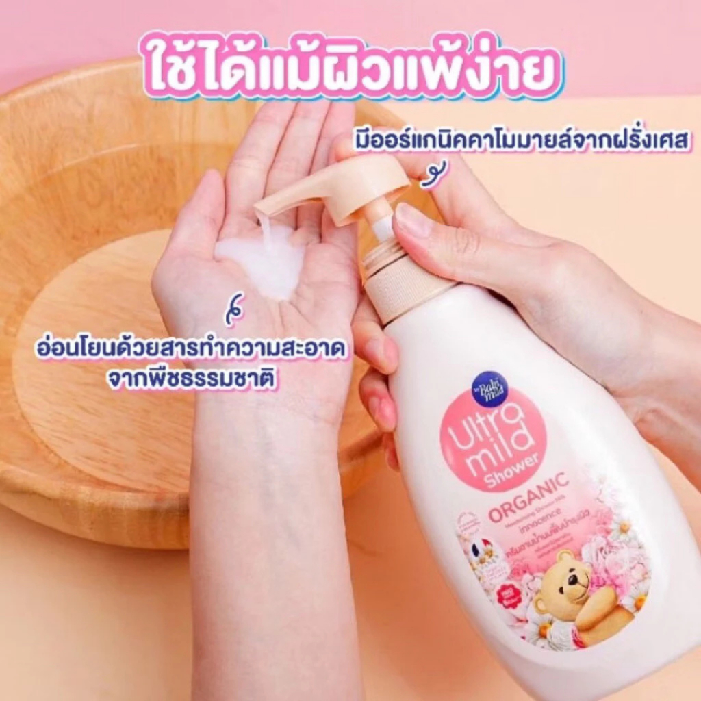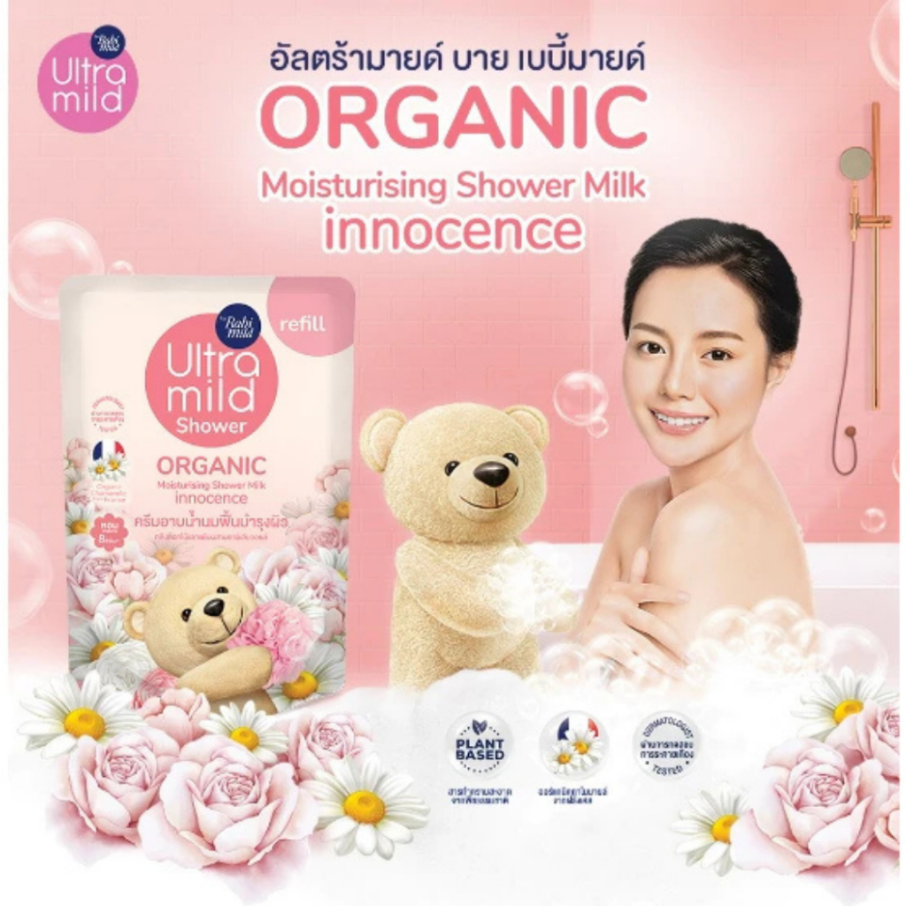 Babi Maid Ultra Mild Organic ครีมอาบน้ำเบบี้มายด์ อัลตร้ามายด์ ออร์แกนิค ชาวเวอร์ มิลค์ สูตรน้ำนม ชนิดถุงเติม 380 มล.