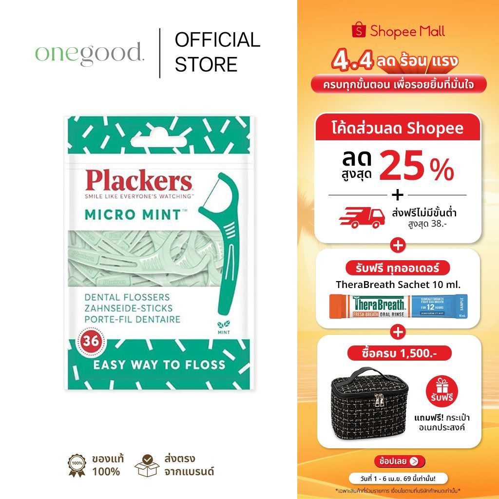 Plackers Flosser Micro Mint 36 ct |ไหมขัดฟัน แบบมีด้ามจับ ไม่ยืด ฉีกขาด ใช้งานง่าย 36 ชิ้น