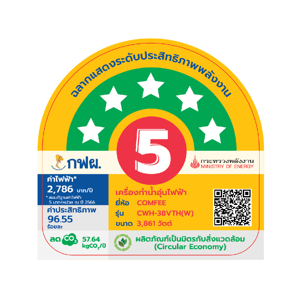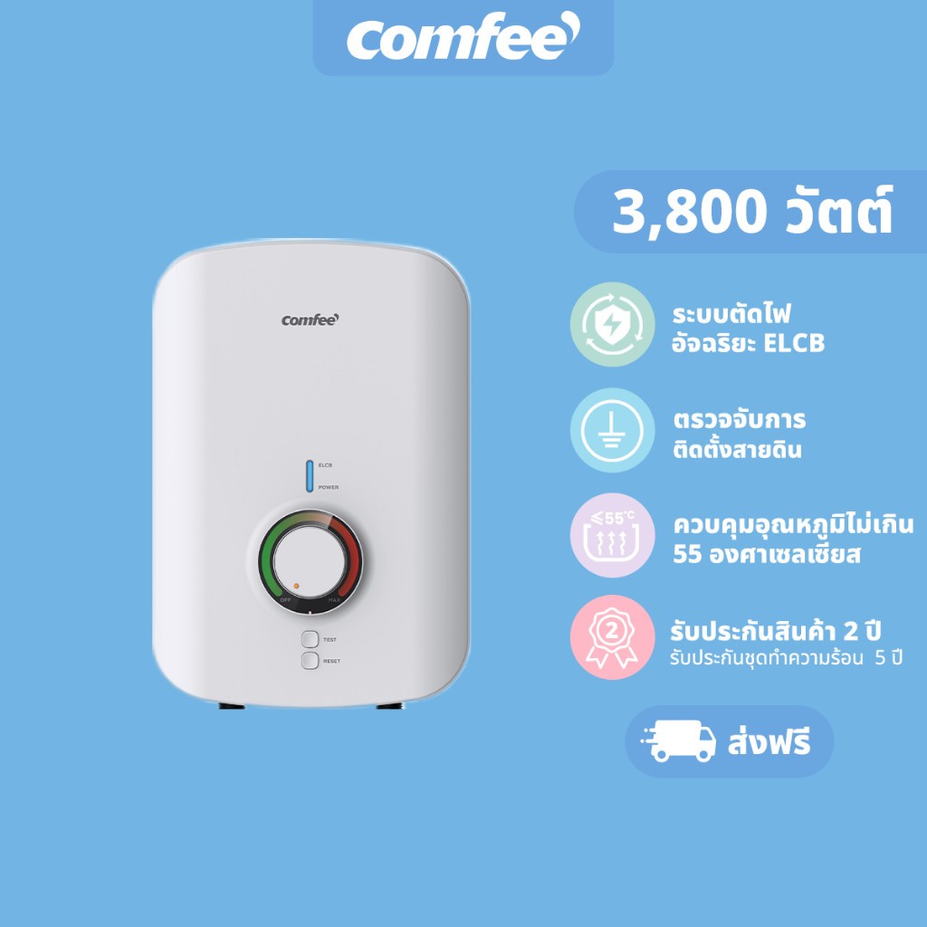 Comfee เครื่องทำน้ำอุ่น 3,800 วัตต์ CWH-38VTH(W) พร้อมชุดฝักบัว