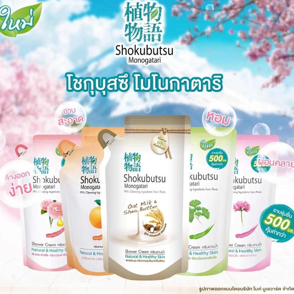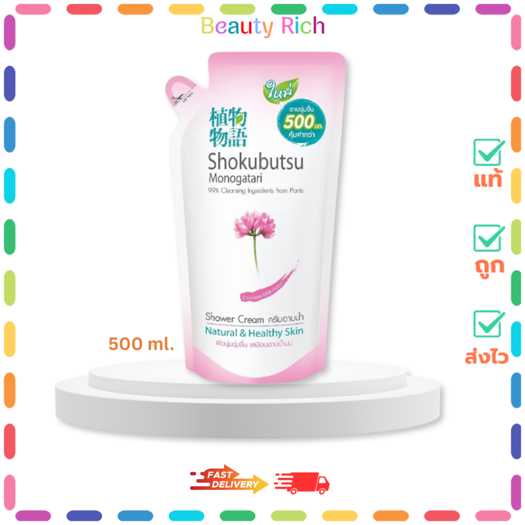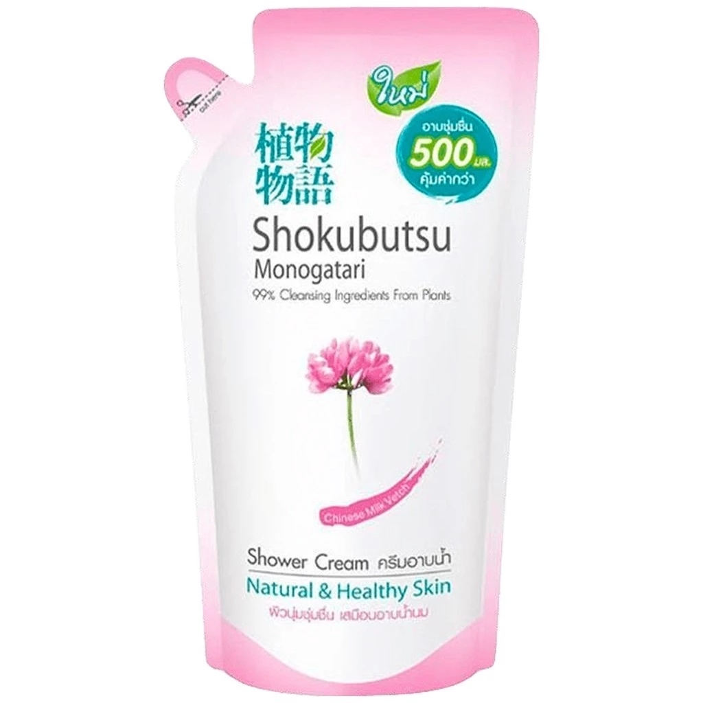 (1 ถุง) Shokubutsu Monogatari Chinese Milk Vetch (สีชมพู) ครีมอาบน้ำ โชกุบุสซึ (500 ml.)