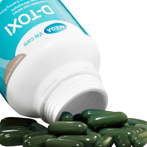 Mega We Care D-Toxi - เมก้า วีแคร์ ดี-ท๊อกซี่ อาหารเสริมช่วยล้างพิษ 1 ขวด บรรจุ 30 เม็ด