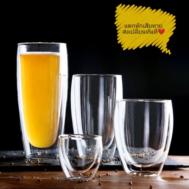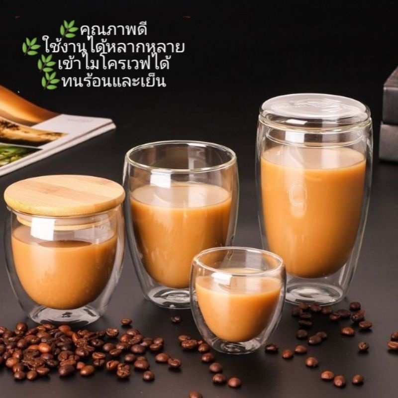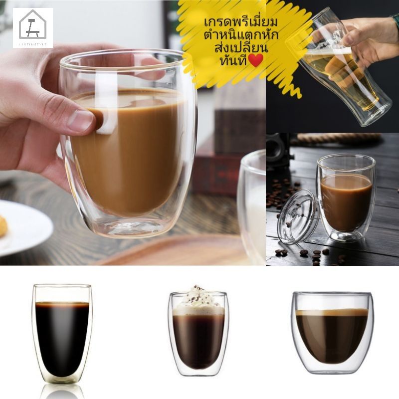 Liveinstyle❤️ แก้วกาแฟ 2 ชั้น แก้วน้ำ สำหรับใส่ ลาเต้ เอสเพรสโซ่ ชา ทนร้อน สวยมินิมัล เกรดเอ