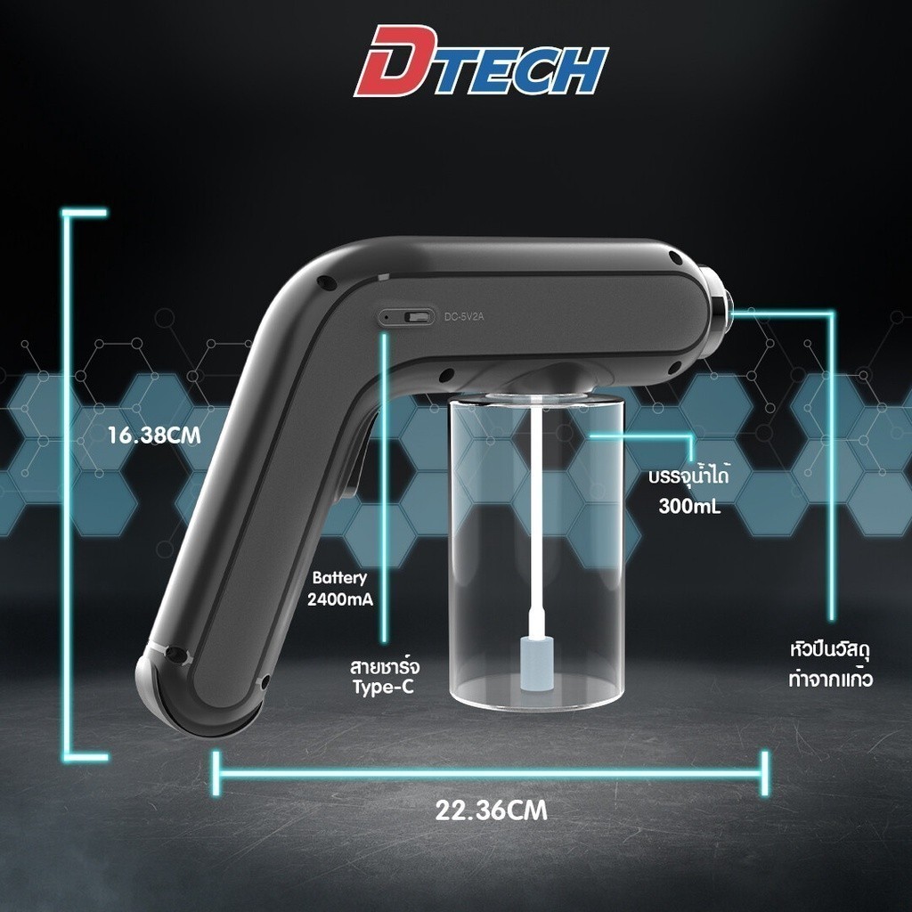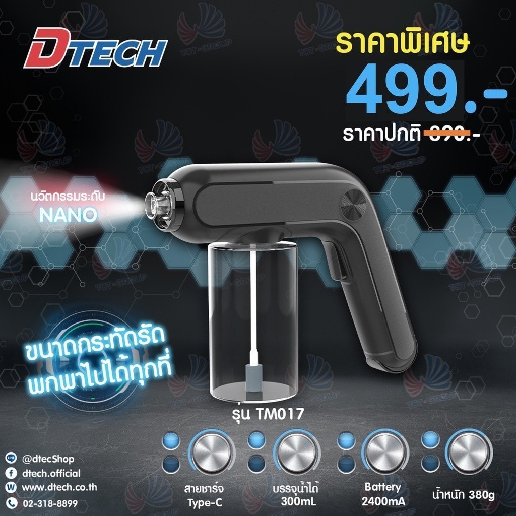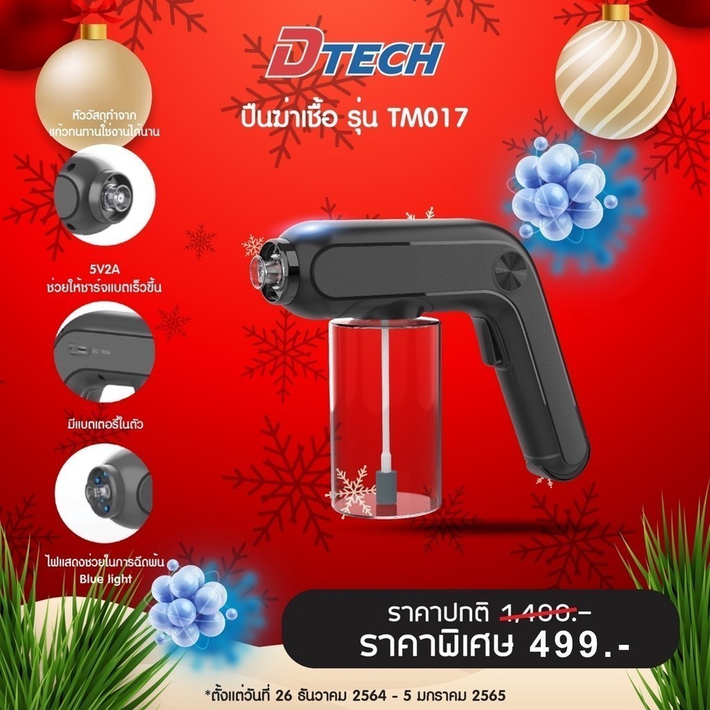 DTECH รุ่น TM017 ปืนฉีดฆ่าเชื้อโรคละอองนาโน ฆ่าเชื้อนาโนไร้สายแสงสีฟ้า ฉีดกระจายวงกว้าง (ประกันศูนย์ 3 เดือน)