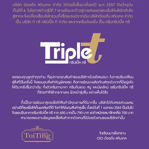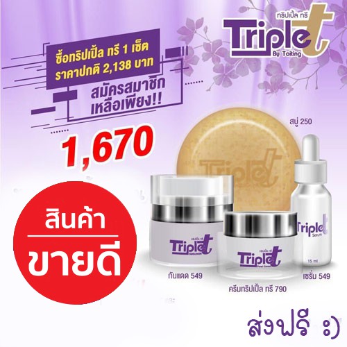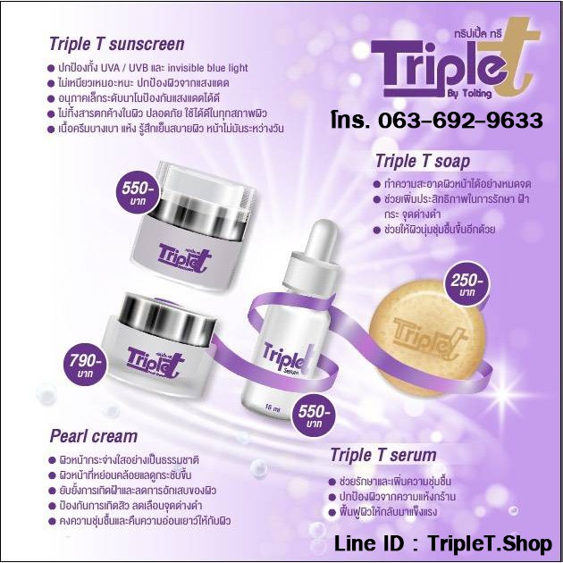 ครีมทริปเปิ้ลทรี Triple T 🔥 ชุดเซ็ ตดูแลผิวหน้า ครีมทริปเปิ้ลทรี เซรั่ม ครีมกันแดดและสบู่ ราคาสมาชิก 1,670 บาท