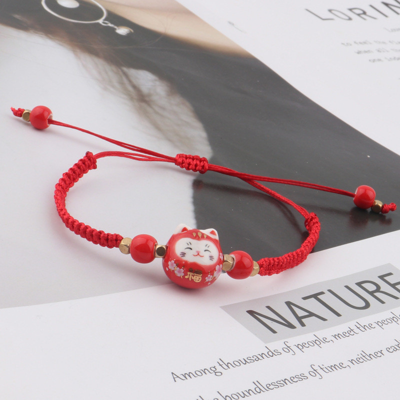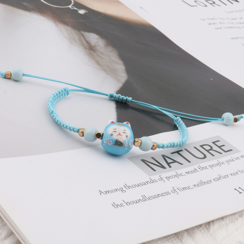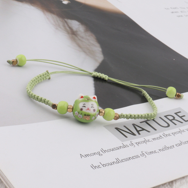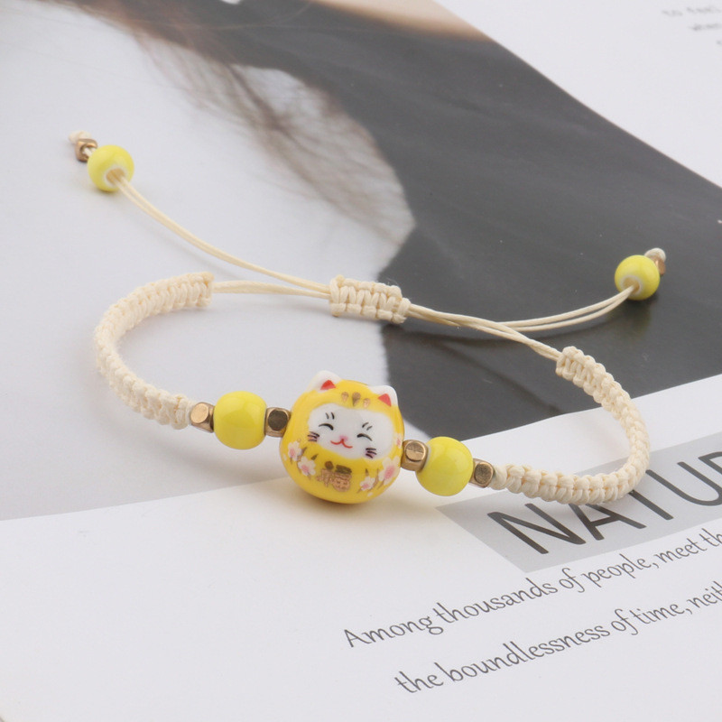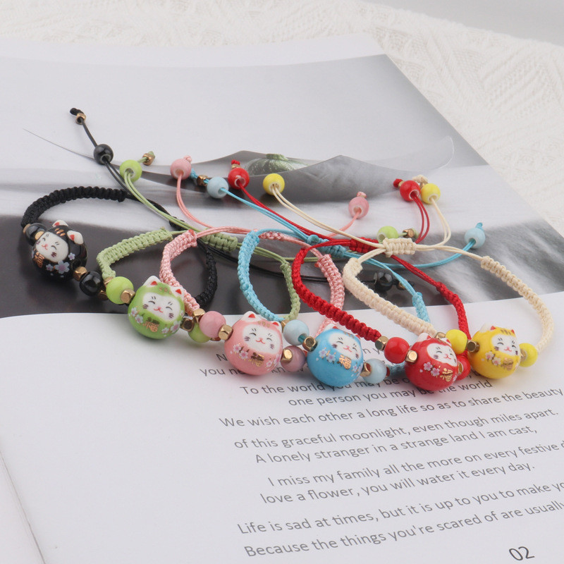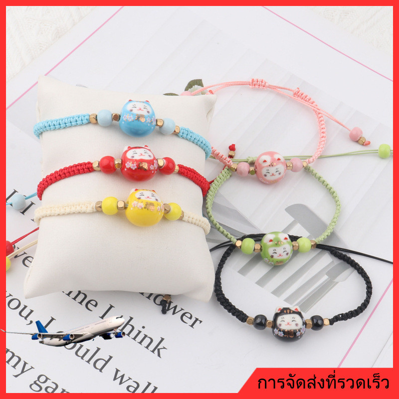 ❤️DIY เครื่องประดับ❤️สร้อยข้อมือถักลายการ์ตูนเซรา믹 Lucky Cat สีสดใส เหมาะสำหรับนักเรียนและขายส่ง [สร้อยข้อมือ กําไลข้อมือ]