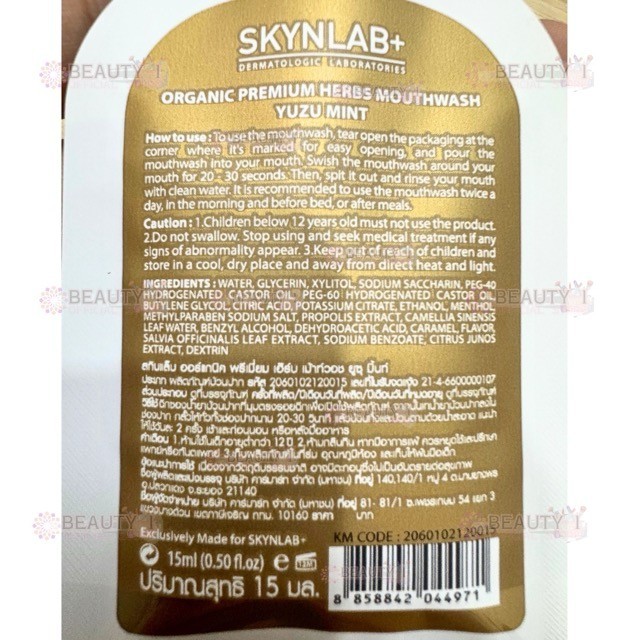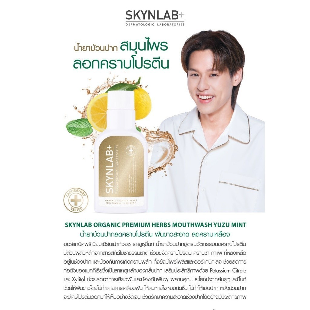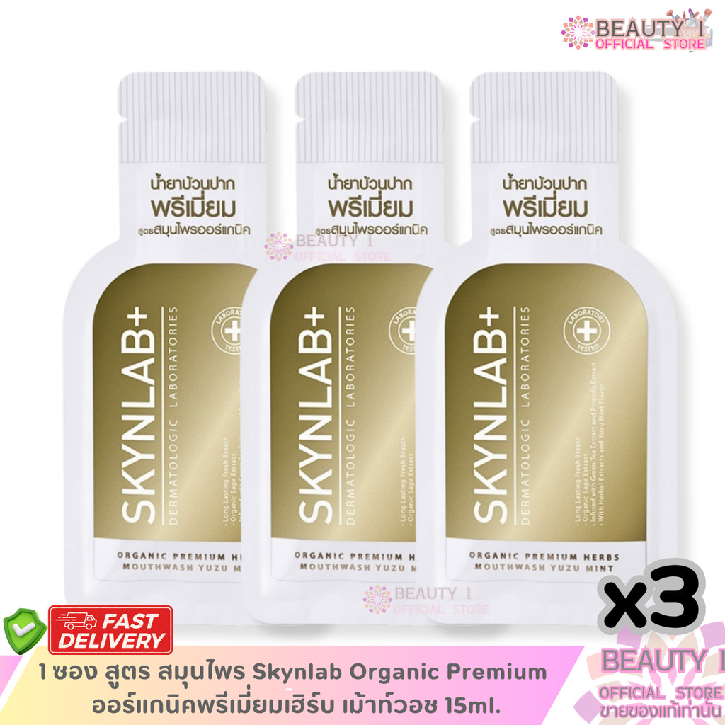 โปร 3 ซอง น้ำยาบ้วนปาก สกินแล็บ สูตรสมุนไพร Skynlab ออร์แกนิคพรีเมี่ยมเฮิร์บ เม้าท์วอช 15ml.