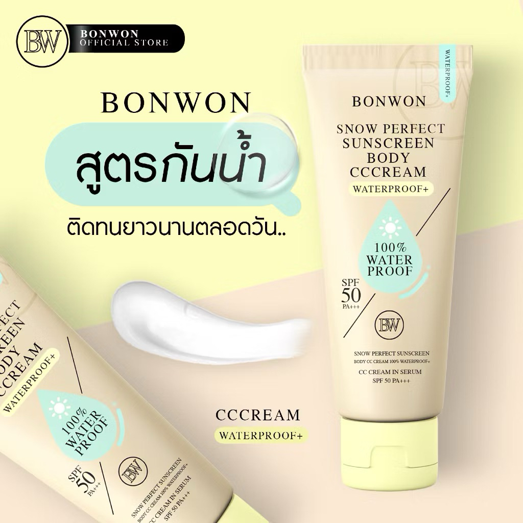 [พร้อมส่ง+ลด50%ในไลฟ์] กันแดดบอนวอน BONWON SNOW PERFECT SUNSCREEN โทนอัพปรับสีผิว 1 ระดับ กันน้ำ กันเหงื่อ ไม่ติดขน