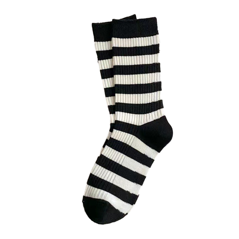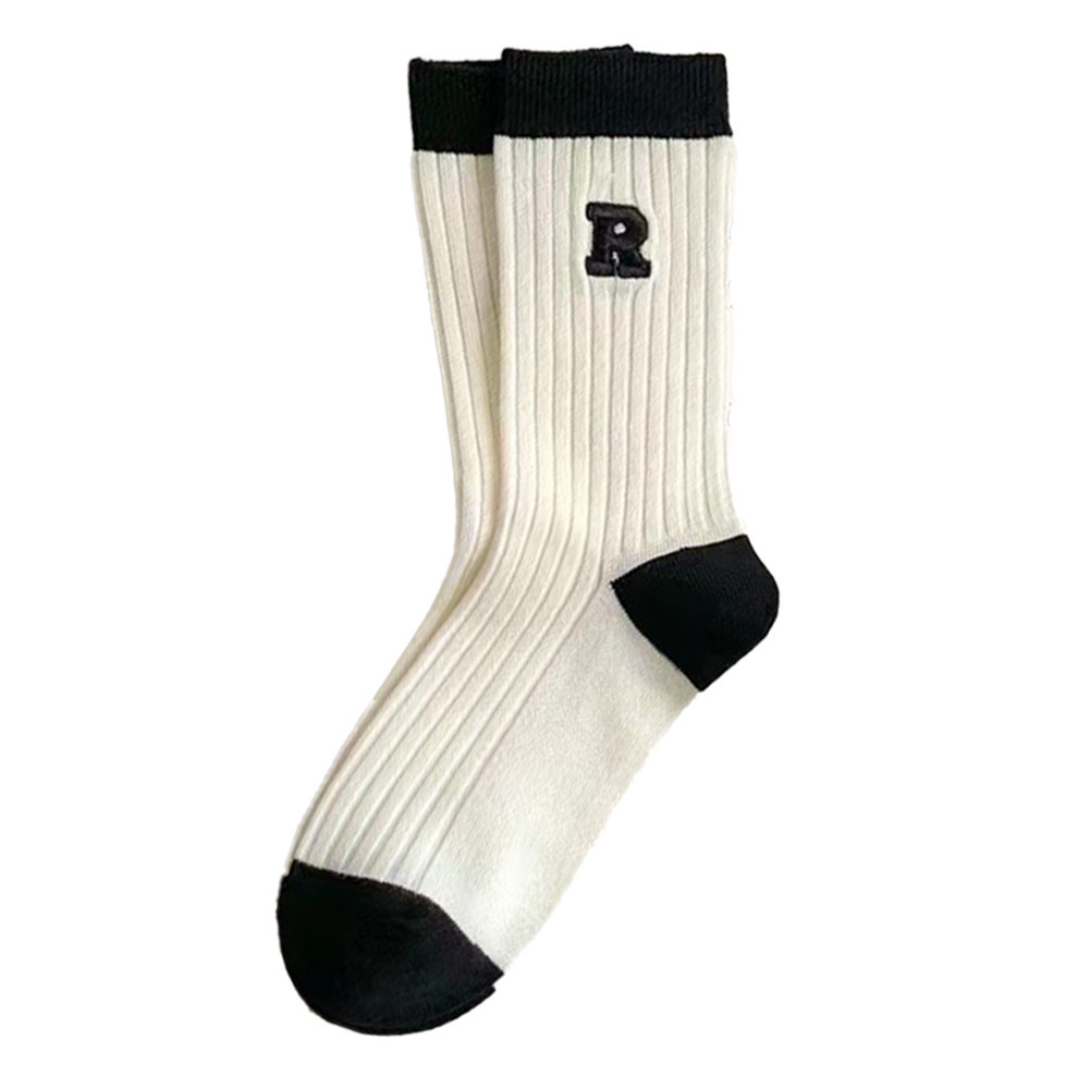ถุงเท้าทรงกระบอกขนาดกลางตัวอักษรลายขาวดำ