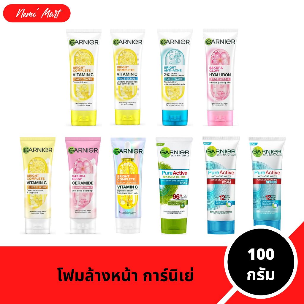 โฟมล้างหน้า การ์นิเย่ ผลิตภัณฑ์ทำ ความสะอาดผิวหน้า เพื่อผิวดูกระจ่างใส ปริมาณ 100 กร้ม มีให้เลือก 9 สูตร