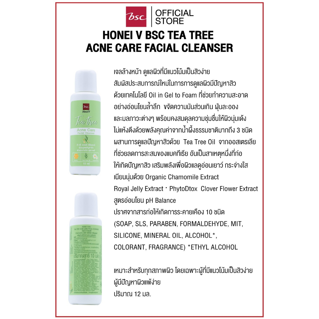 ((ของแถม)) HONEI V BSC TEA TREE ACNE CARE FACIAL CLEANSER ฮันนี่ วี บีเอสซี ที ทรี แอคเน่ แคร์ เฟเชียล คลีนเซอร์ เจลล้างหน้า ดูแลผิวที่มีแนวโน้มเป็นสิวง่าย