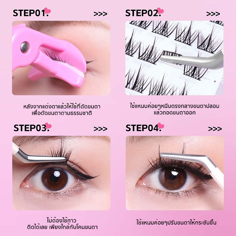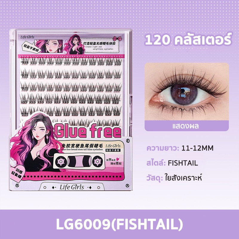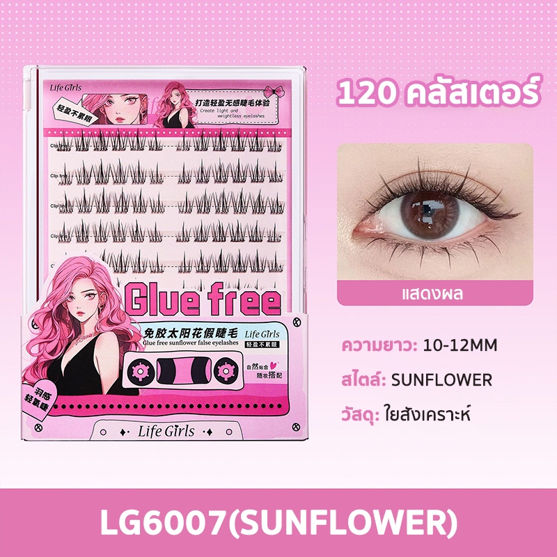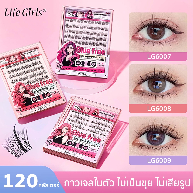 Life Girls ขนตาปลอม 3D มีกาวในตัว ความจุขนาดใหญ่ 120 คลัสเตอร์/กล่อง ไม่ต้องใช้กาว ธรรมชาติ ติดทน เหมาะสำหรับมือใหม่