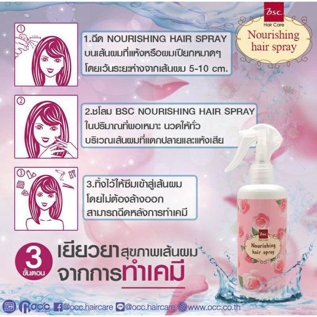 🍥บีเอสซี นอร์ริชชิ่ง แฮร์สเปรย์ 300มล. Bsc Nourish Hair Spray สเปรย์ ดูเเลเส้นผม ให้เรียบลื่น นุ่มเงางาม มีสุขภาพดีขึ้น