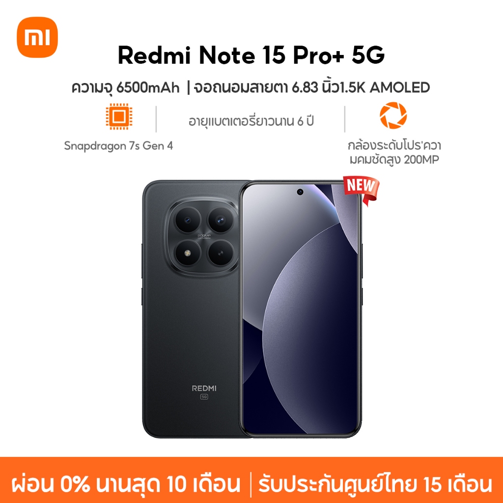 [NEW] Xiaomi Redmi Note 15 Pro+ 12+512G ชิป Snapdragon 7s Gen 4 กล้องระดับโปร'ความคมชัดสูง 200MP แบตเตอรี่ 6500mAh