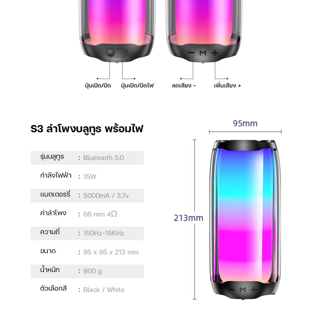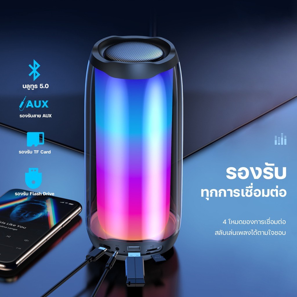 ลำโพงบลูทูธ Qisheng ไฟ LED สีสันสดใส ไฟ 12 โหมด เสียง Surroud คุณภาพระดับ HIFI เสียงดี