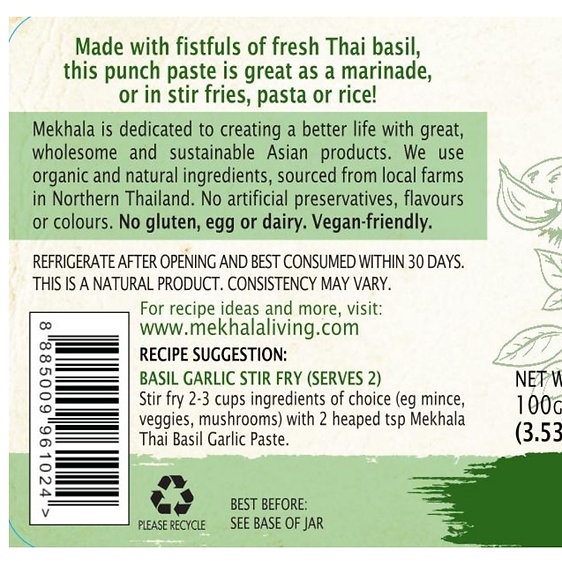 Mekhala ซอสผัดกะเพรา Organic Thai Basil Garlic Paste (100gm)