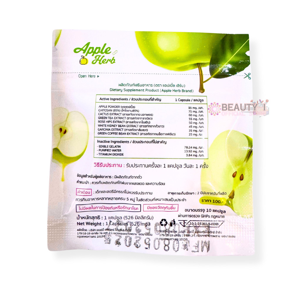 1 ซอง แพ็คเกจใหม่ Green Apple Herb ดีท็อกแอปเปิ้ล แพคเกจรุ่นใหม่ 10 แคปซูล x 1