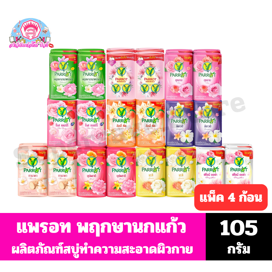 แพรอท สบู่พฤกษา นกแก้ว สบู่ทำความสะอาดผิวกาย *//*ขนาด105กรัม/แพ็ค 4 ก้อน*//*