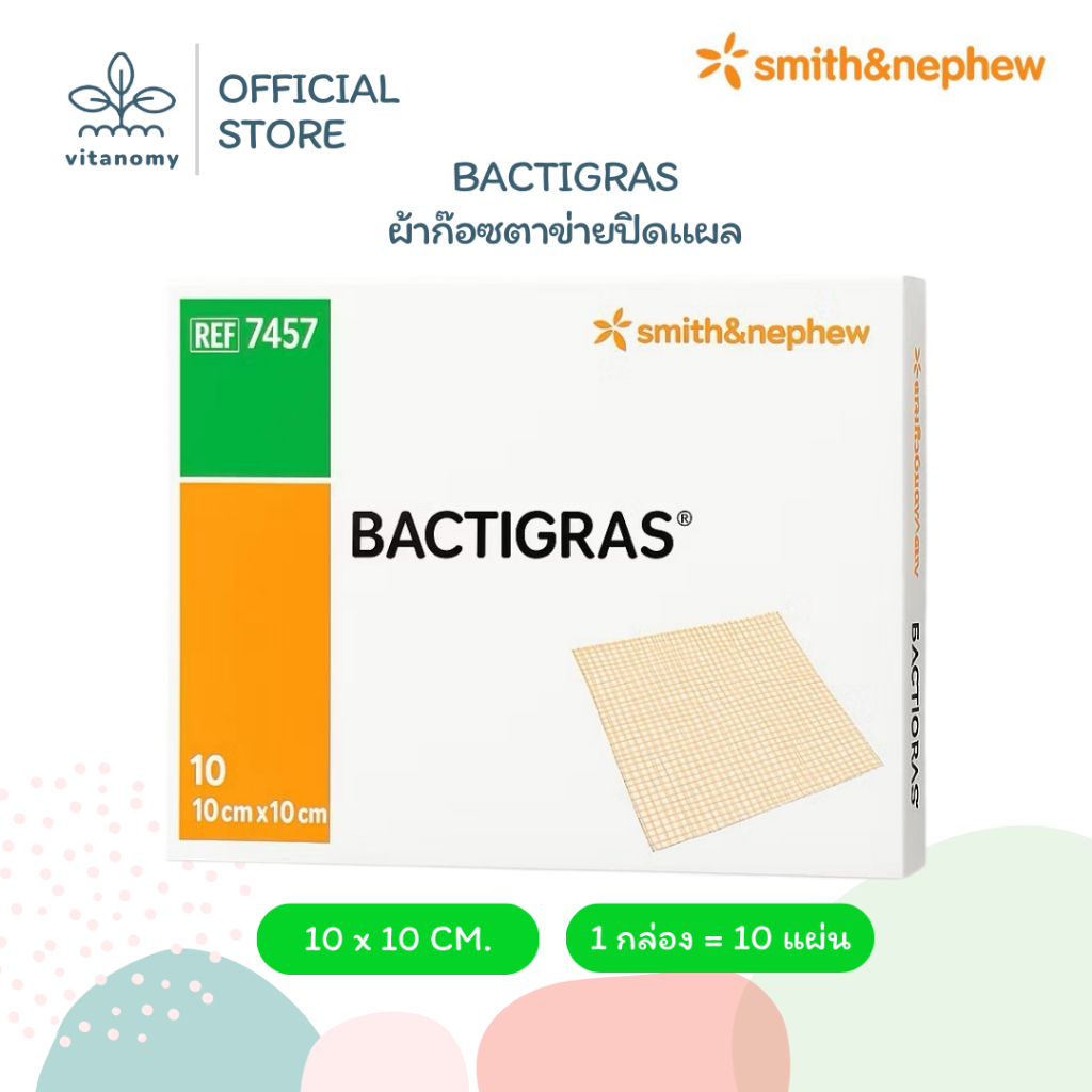 BACTIGRAS ผ้าก๊อซตาข่ายปิดแผล | ขนาด 10x10ซม. (1 กล่อง 10 แผ่น)