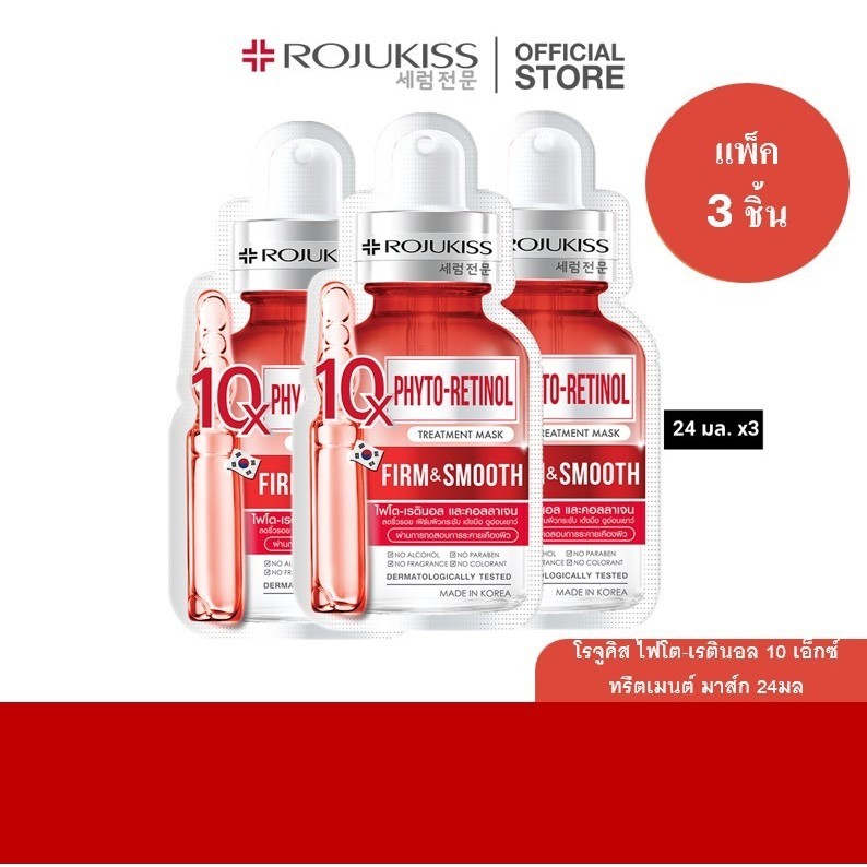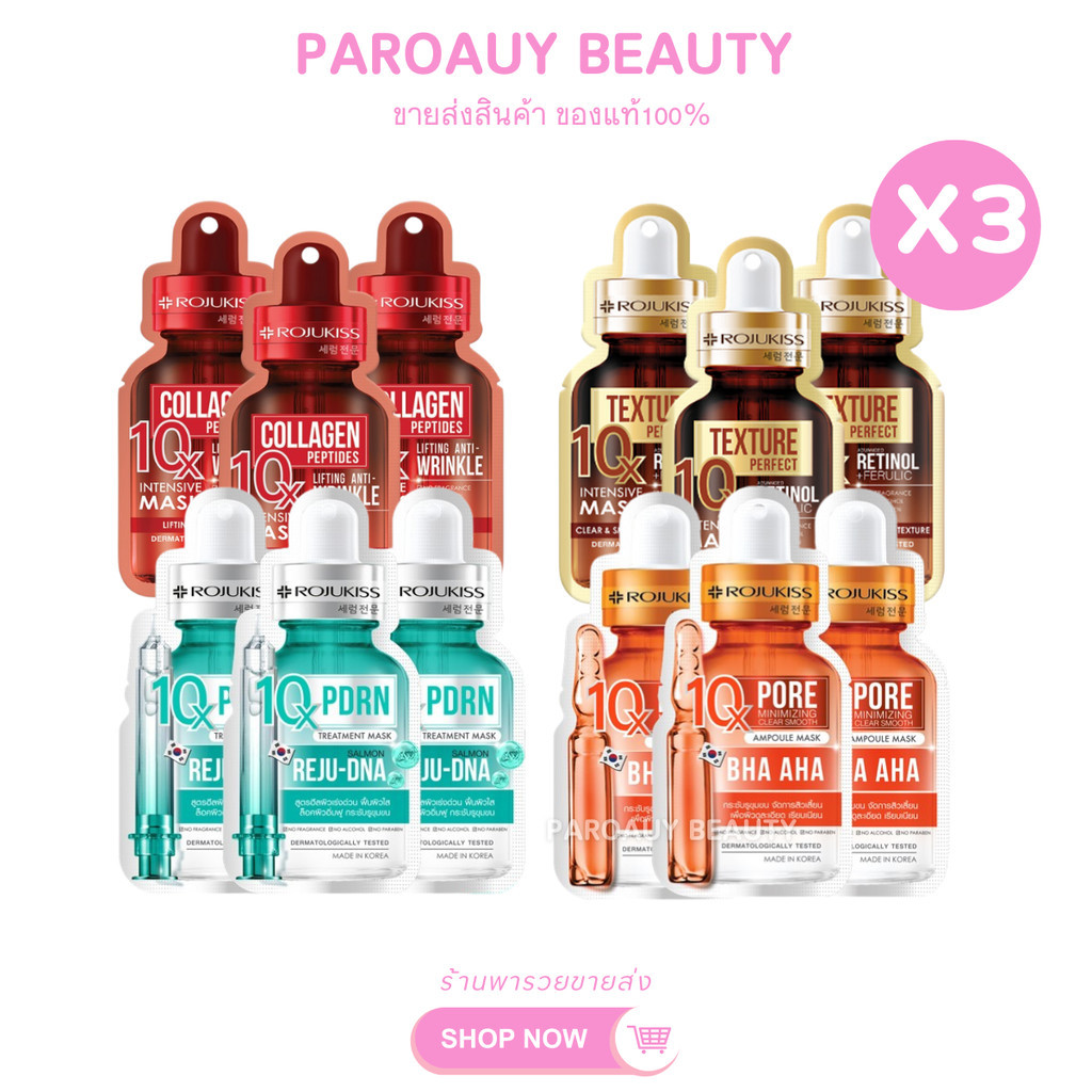 (3 แผ่น) ROJUKISS Mask 10x โรจูคิส มาส์ก 10 เอ็กซ์ 24.ml x3 แผ่น มีให้เลือก 4 สูตร