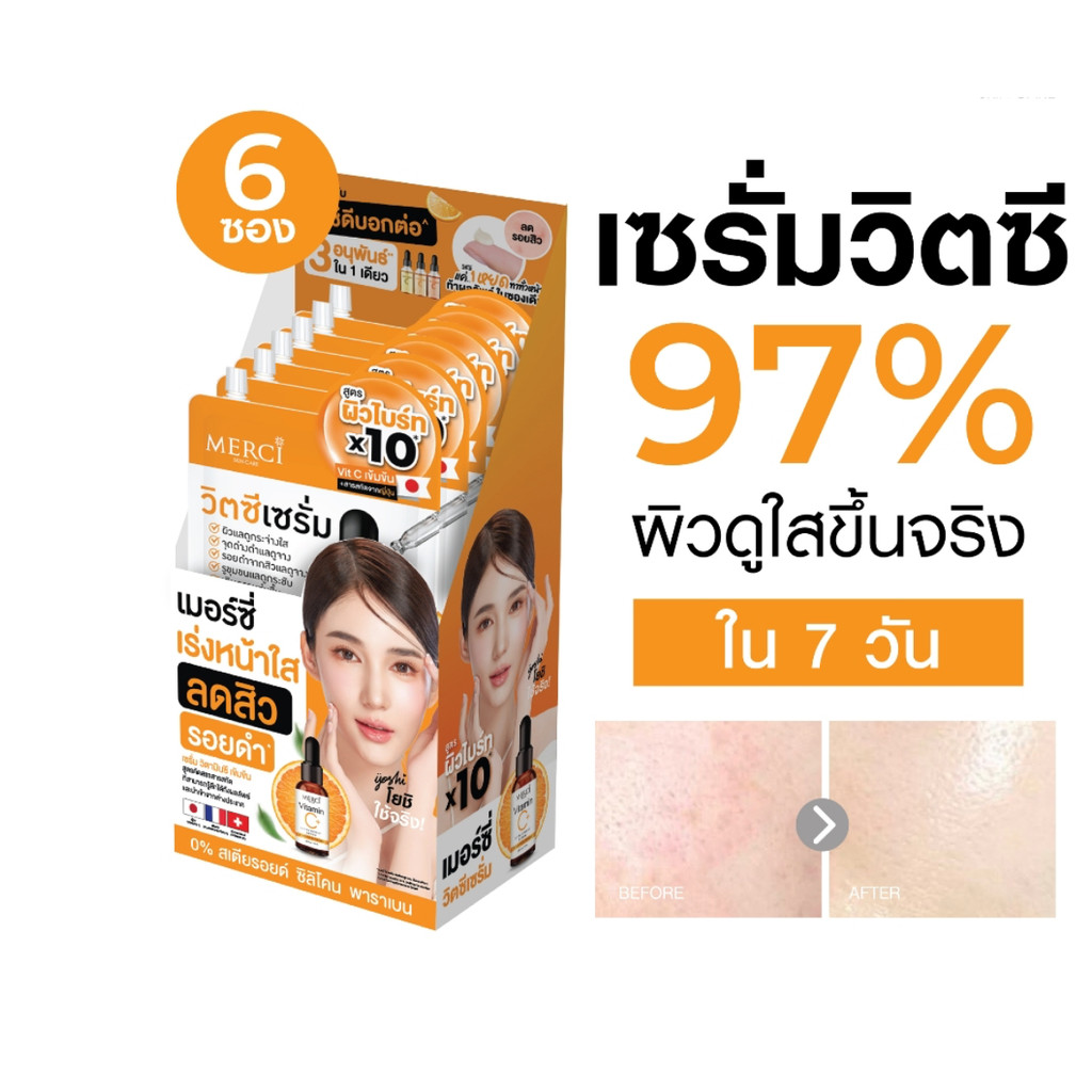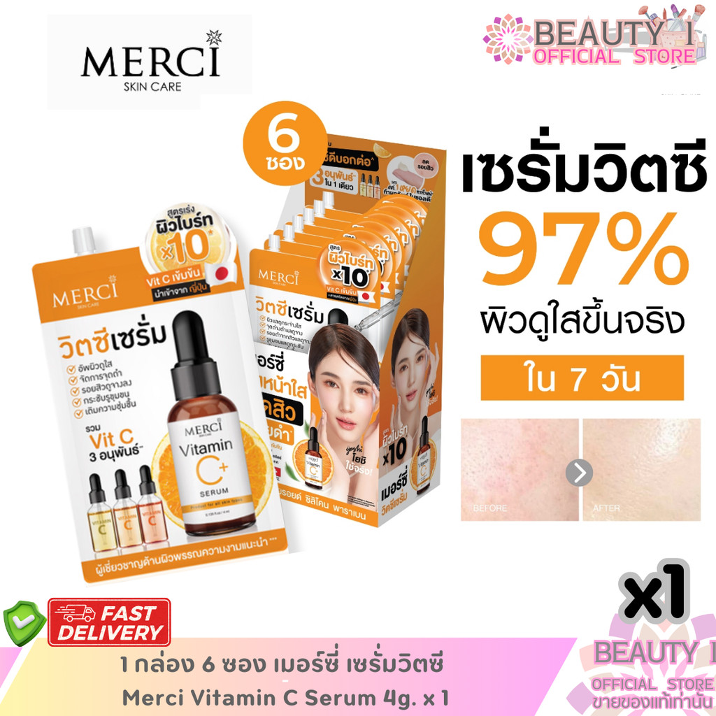 1 กล่อง 6 ซอง เมอร์ซี่ เซรั่มวิตซี Merci Vitamin C Serum 4g. x 1