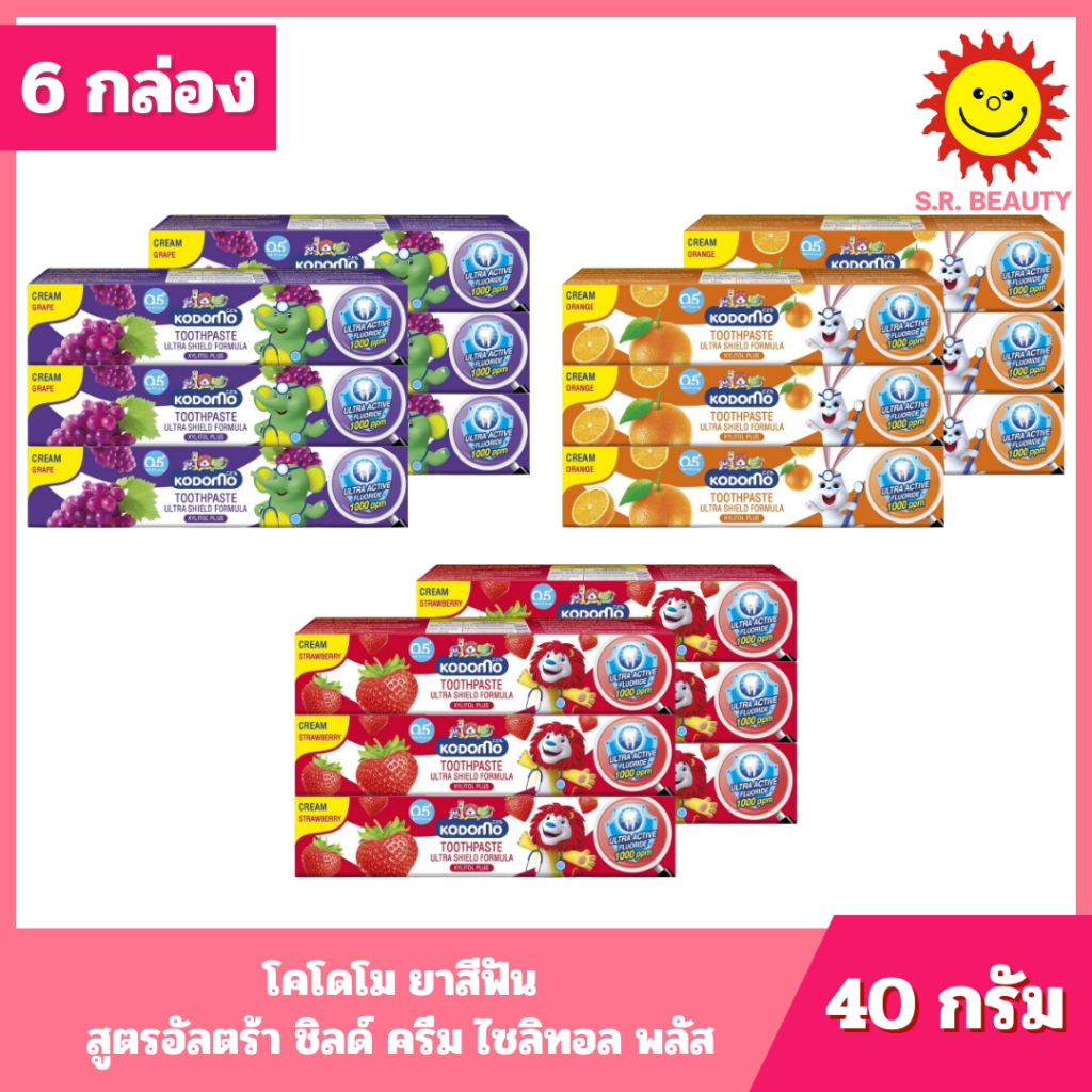 [ 1 แพ็ค ] Kodomo โคโดโม ยาสีฟัน สูตรอัลตร้า ชิลด์ ครีม ไซลิทอล พลัส ขนาด 40 กรัม (6กล่อง) 3 สูตร