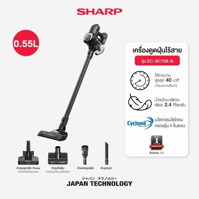 SHARP เครื่องดูดฝุ่นไร้สาย รุ่น EC-SC75B-B กรองฝุ่น4ขั้นตอน การรับประกัน 1 ปี