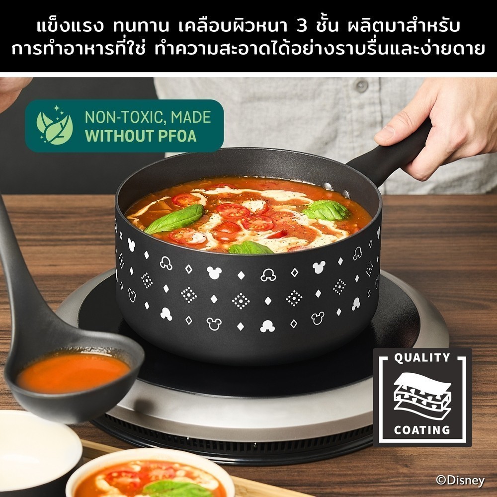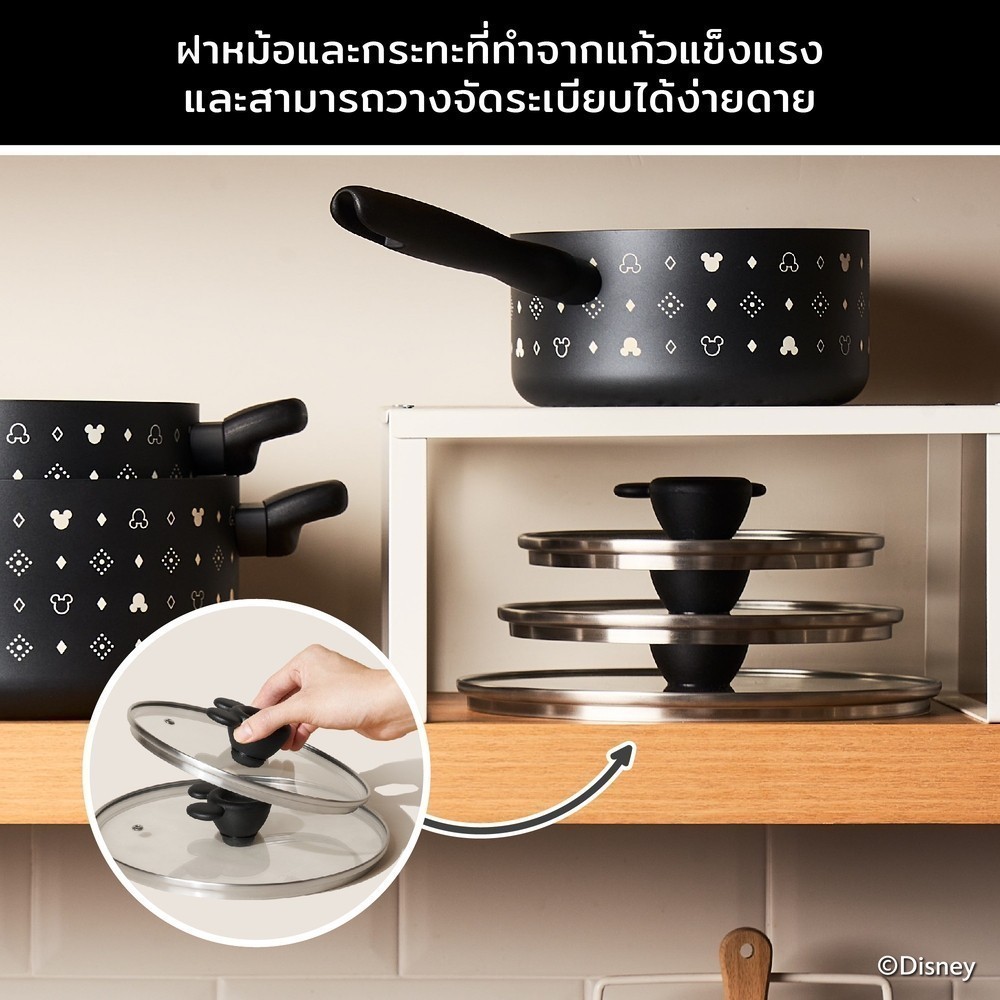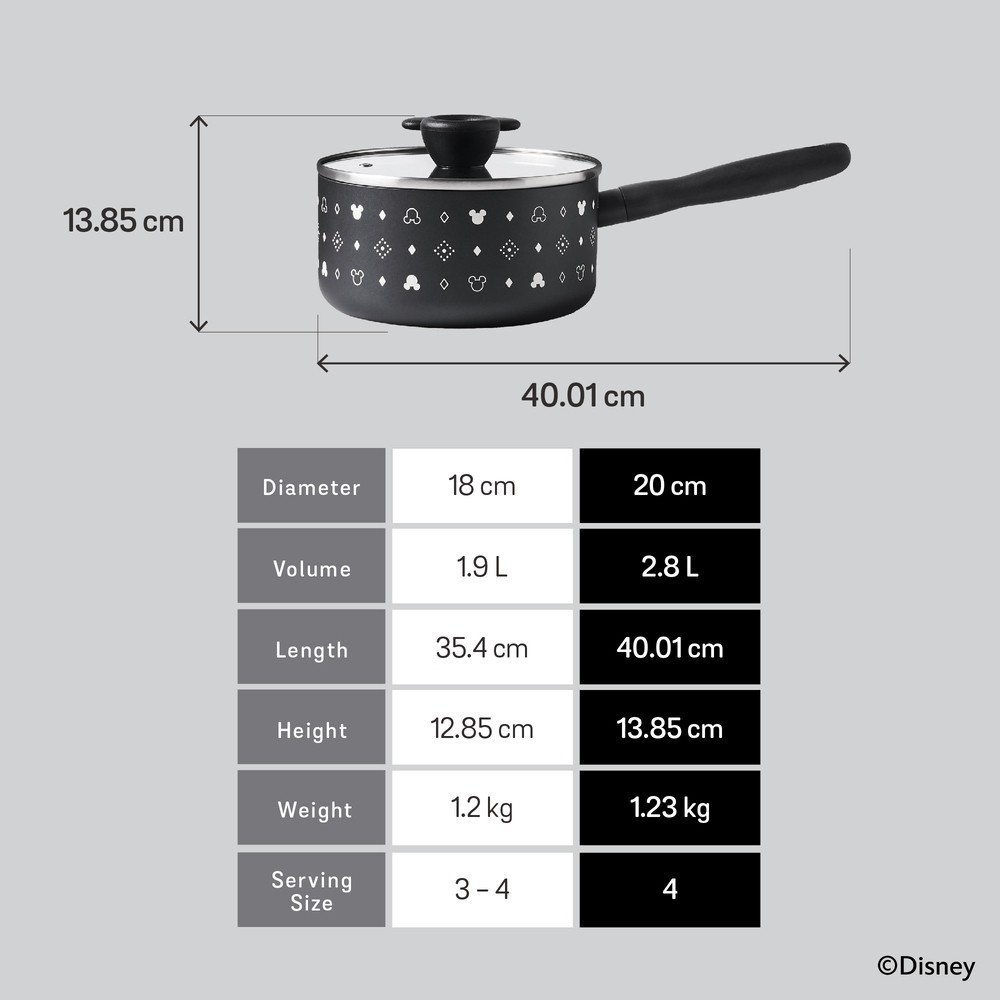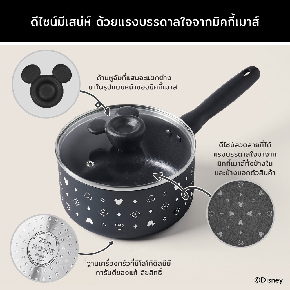 DISNEY MONOCHROME หม้อมีด้ามจับ MEYER ขนาด 20 ซม. / 2.8 ลิตร พร้อมฝาแก้ว Saucepan มิคกี้ เมาส์ (18236-T)