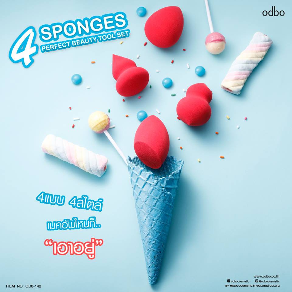 🌟 ชุดฟองน้ำ เนื้อดี 4 แบบ โอดีบีโอ ODBO 4 SPONGES PERFECT BEAUTY TOOL SET OD8-142