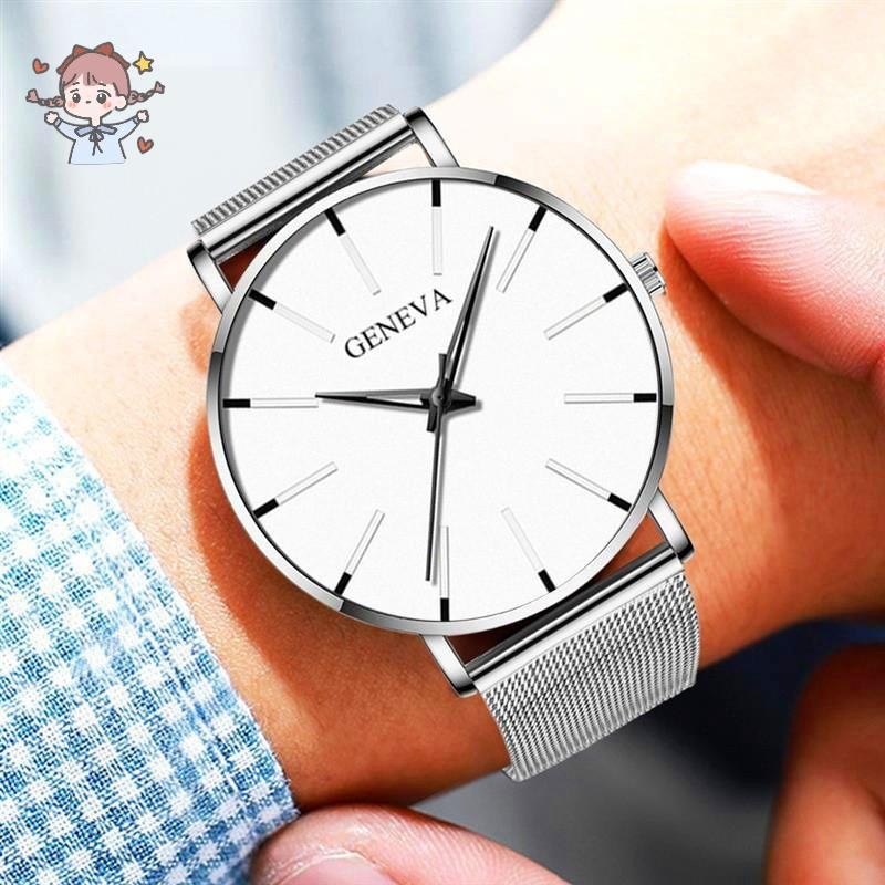 คู่ผู้ชายนาฬิกาผู้หญิงธุรกิจที่เรียบง่ายตาข่ายสายนาฬิกาควอทซ์