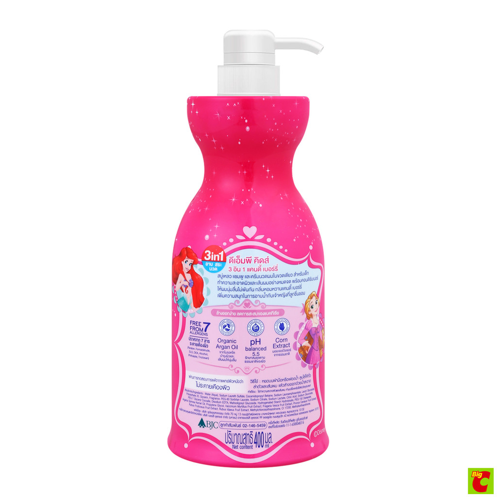 ดีเอ็มพี คิดส์ 3อิน1 สบู่เหลวอาบ สระ นวด กลิ่นแคนดี้เบอร์รี่ 400 มล.
