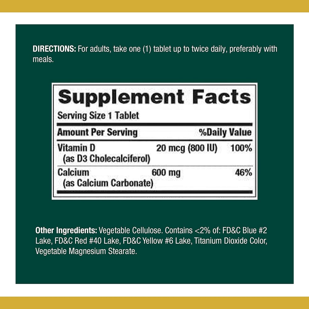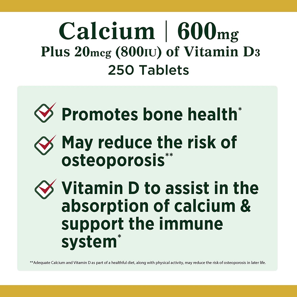 [ของแท้ 100%] NATURE'S BOUNTY CALCIUM 600 mg WITH VITAMIN D3
