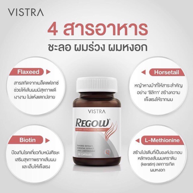 VISTRA Regow 30 แคปซูล วิสทร้า รีโกว สารสกัดจากสนหางม้า แอล-เมไธโอนีน