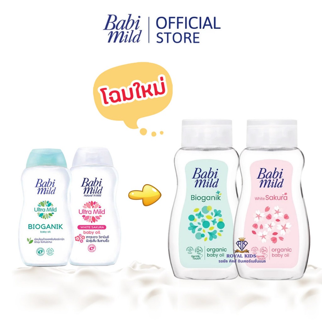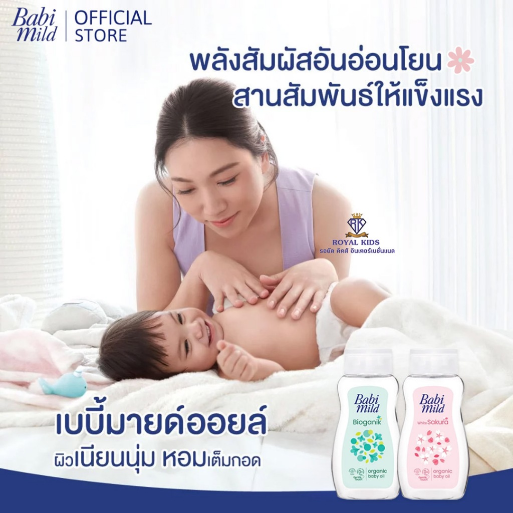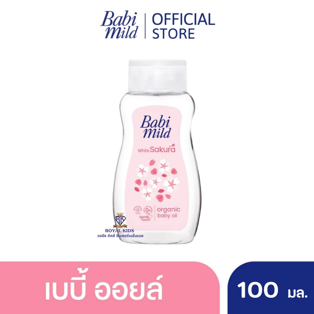 Royal kids เบบี้มายด์ เบบี้ออยล์ ไวท์ ซากุระ พลัส 100 มล./ Babi Mild White Sakura Baby Oil 100ml.