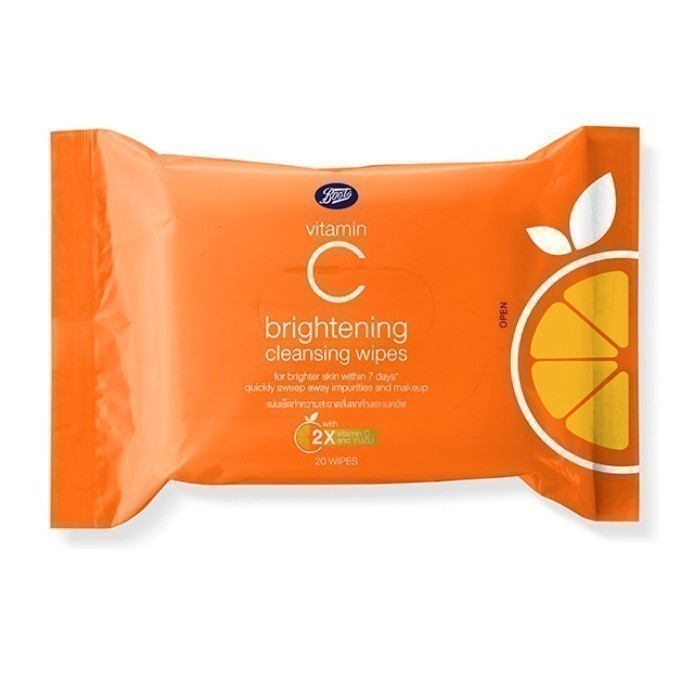 Boots Vitamin C Brightening Cleansing Wips 20PCS บู๊ทส์ วิตามิน ซี ไบร์ทเทนนิ่ง คลีนซิ่ง ไวพ์ส