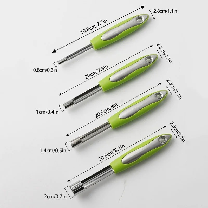 ที่เจาะเมล็ดผลไม้ สแตนเลส ชุด 4 ชิ้น ขูดแกนออกง่าย เหมาะสำหรับแอปเปิล ลูกแพร์ และผลไม้