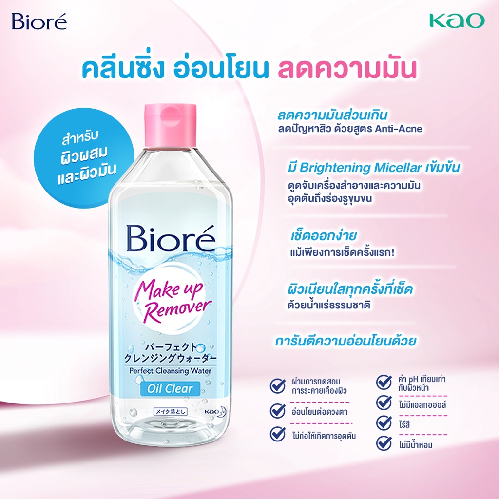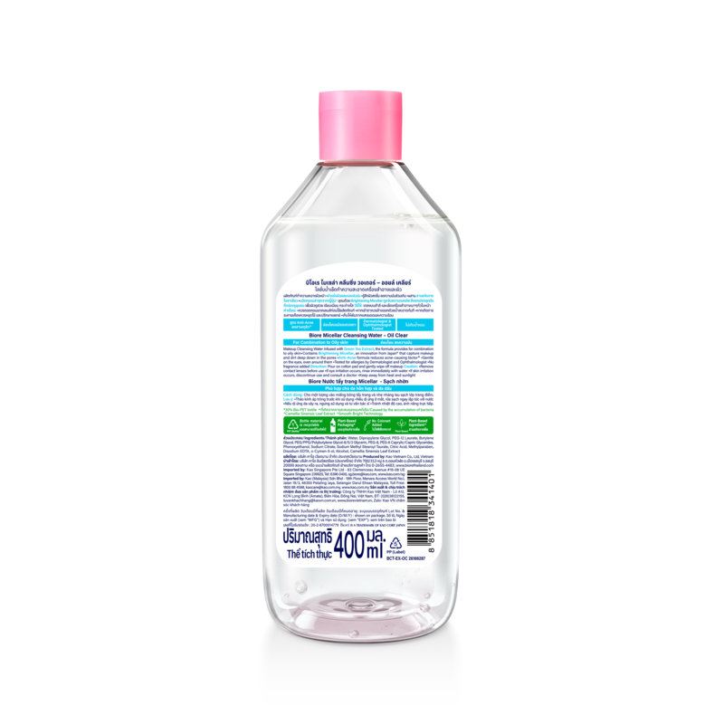 BIORE MICELLAR CLEANSING WATER - OIL CLEAR 400 ml. บิโอเร ไมเซล่า คลีนซิ่ง วอเตอร์ – ออยล์ เคลียร์ 400 มล.