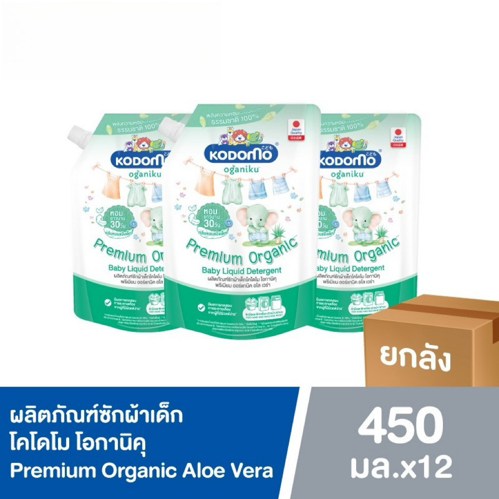 [แพ็ค3ถุง/ยกลัง12ถุง] KODOMO Oganiku Premium Organic ผลิตภัณฑ์ซักผ้าเด็กโคโดโม โอกานิคุ พรีเมียมออร์แกนิคอโล เวร่า450มล.