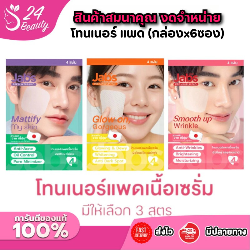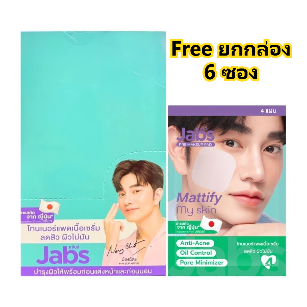 (สินค้าสมนาคุณ งดจำหน่าย) (กล่องx6ซอง) Jabs Daily Toner Pad Jabs Pre Make Up Pad โทนเนอร์ แพด