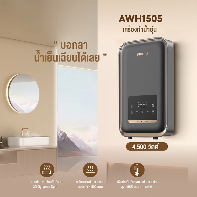 Philips เครื่องทำน้ำอุ่น 4500 วัตต์ รุ่น AWH1505 ประหยัดไฟ สีเทา Water Heater