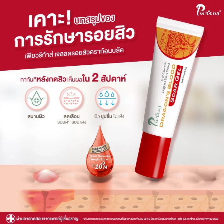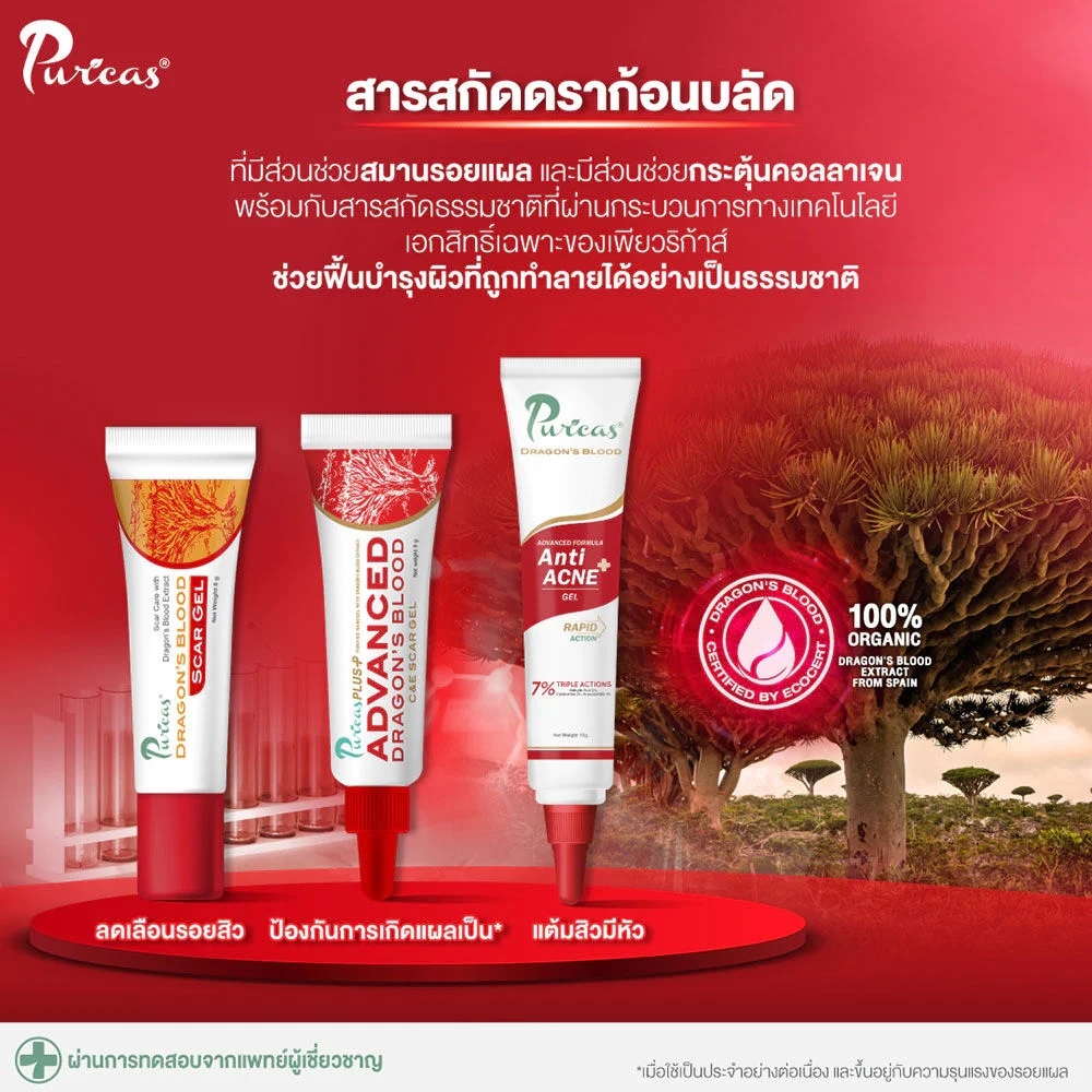 PURICAS Dragon's Blood Scar Gel - Advanced - Anti Acne เพียวริก้า เพียวริก้าส์ เจลลดรอยแผลเป็น ลดสิว