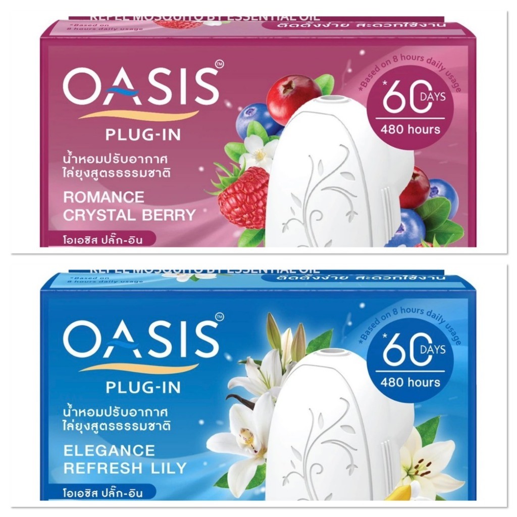 [แพ็ค1แถม1] Oasis Plug-In โอเอซิส ปลั๊ก-อิน น้ำหอมปรับอากาศ แบบไฟฟ้า 60 วัน ขนาด 45มล.