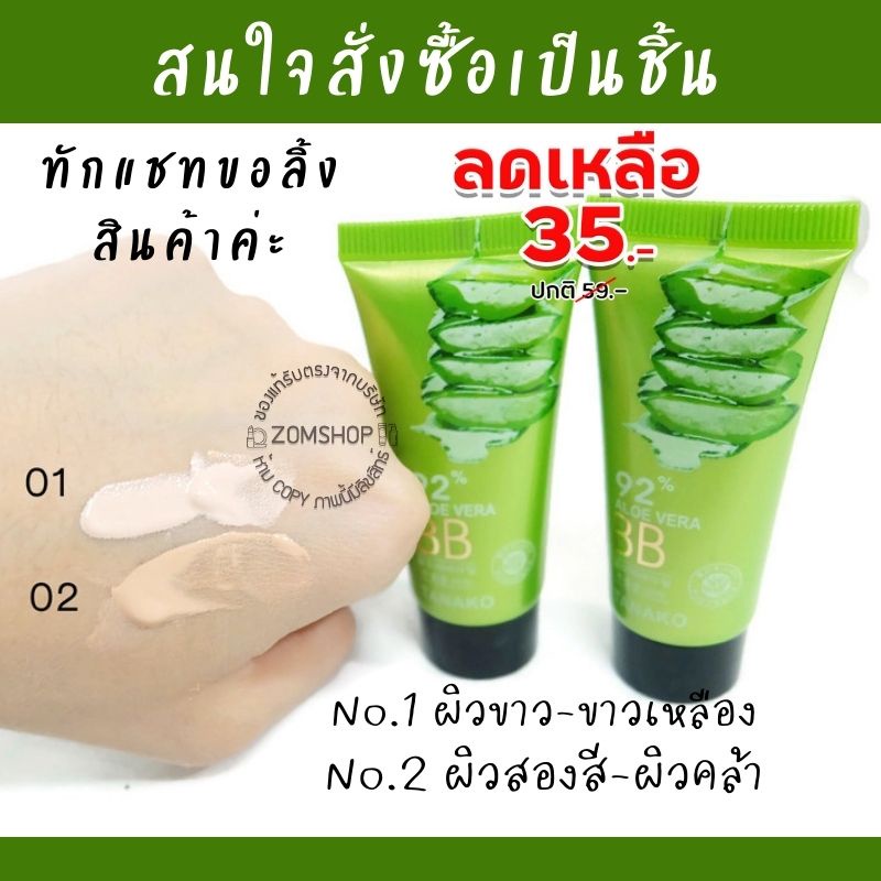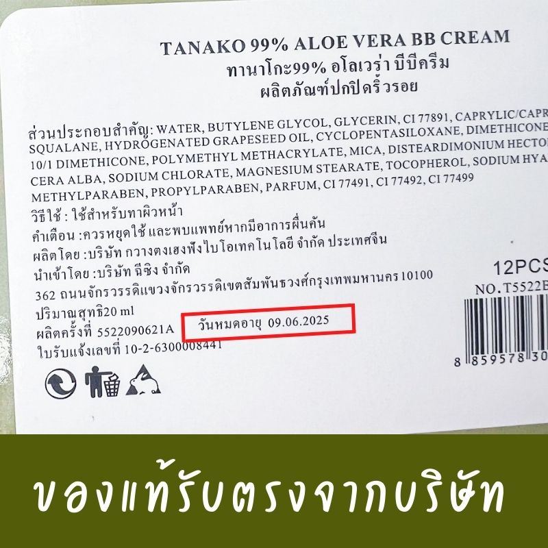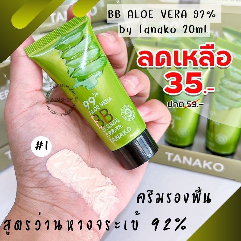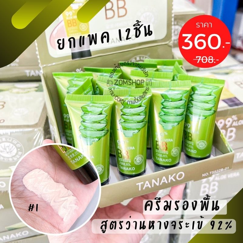 💚แพค12ชิ้น💚 [หลอดจิ๋ว] ครีมรองพื้น สูตรว่านหางจระเข้ BB ALOE VERA 92% by Tanako [ 20ml.x12ชิ้น]