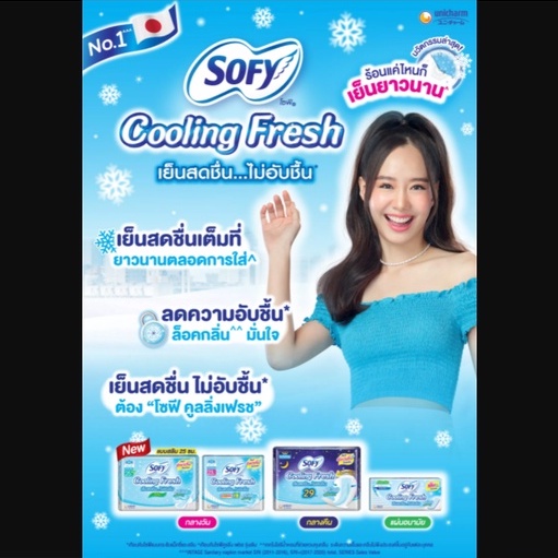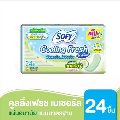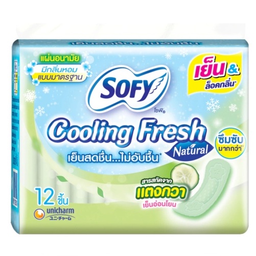 โซฟี คูลลิ่งเฟรช เนเชอรัล แตงกวา แผ่นอนามัย **แบบมาตรฐาน** มีกลิ่นหอม