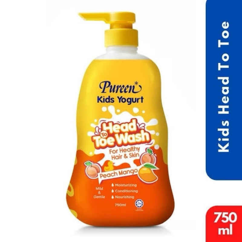 Pureen Kids Yogurt เพียวรีน คิดส์ โยเกิร์ต ผลิตภัณฑ์ทำความสะอาดผิว เฮด ทู โท ของเด็ก ขนาด 750 มล. 1 ขวด B47XX20