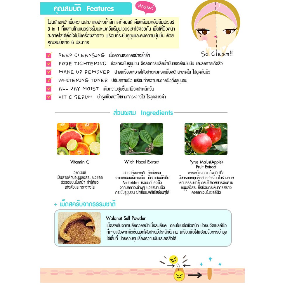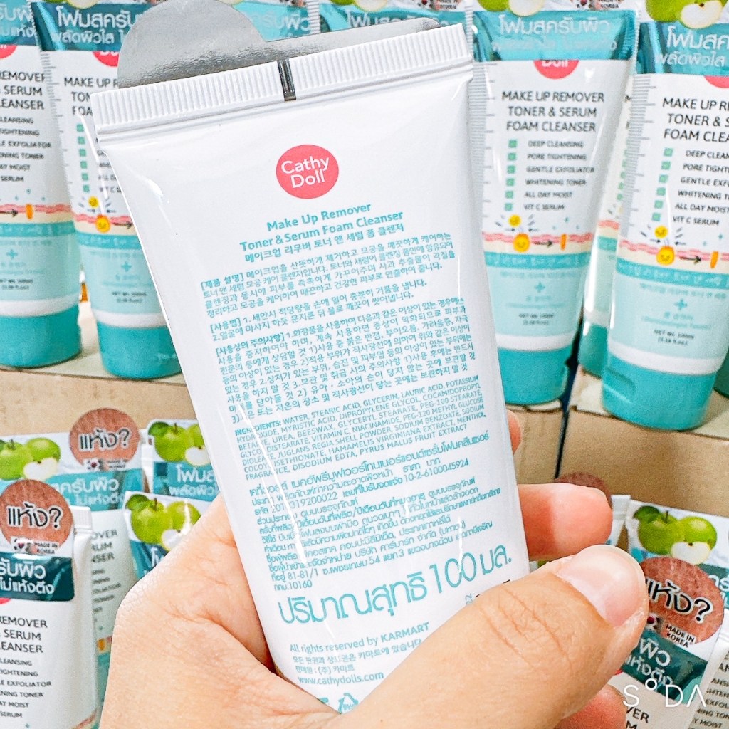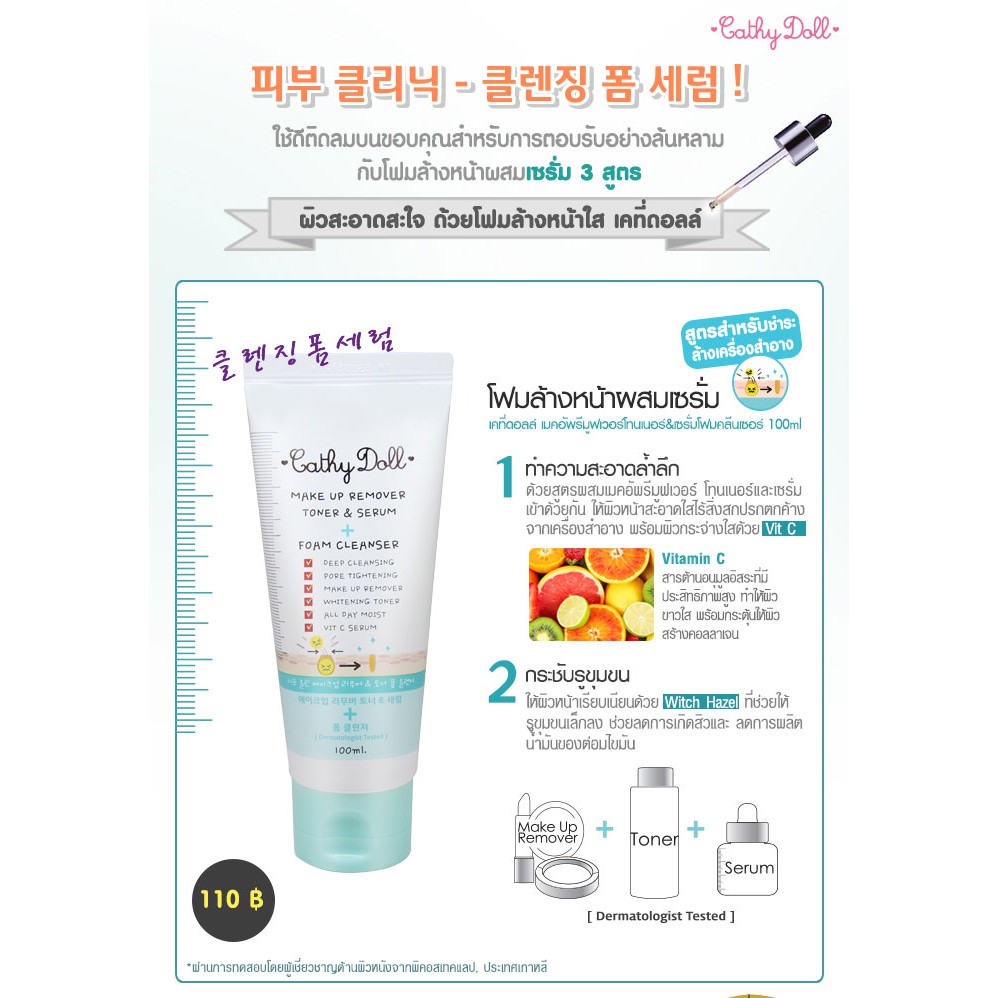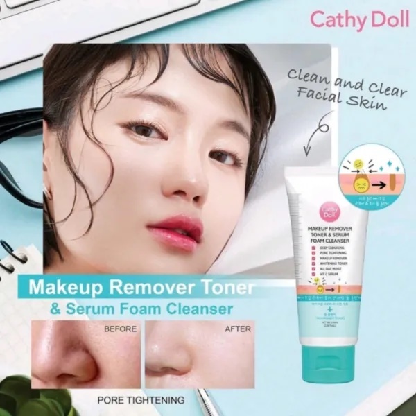 Cathy Doll โฟมล้างหน้า【สีฟ้า สูตรล้างเมคอัพ】Make Up Remover Toner & Serum Foam Cleanser 100ml.