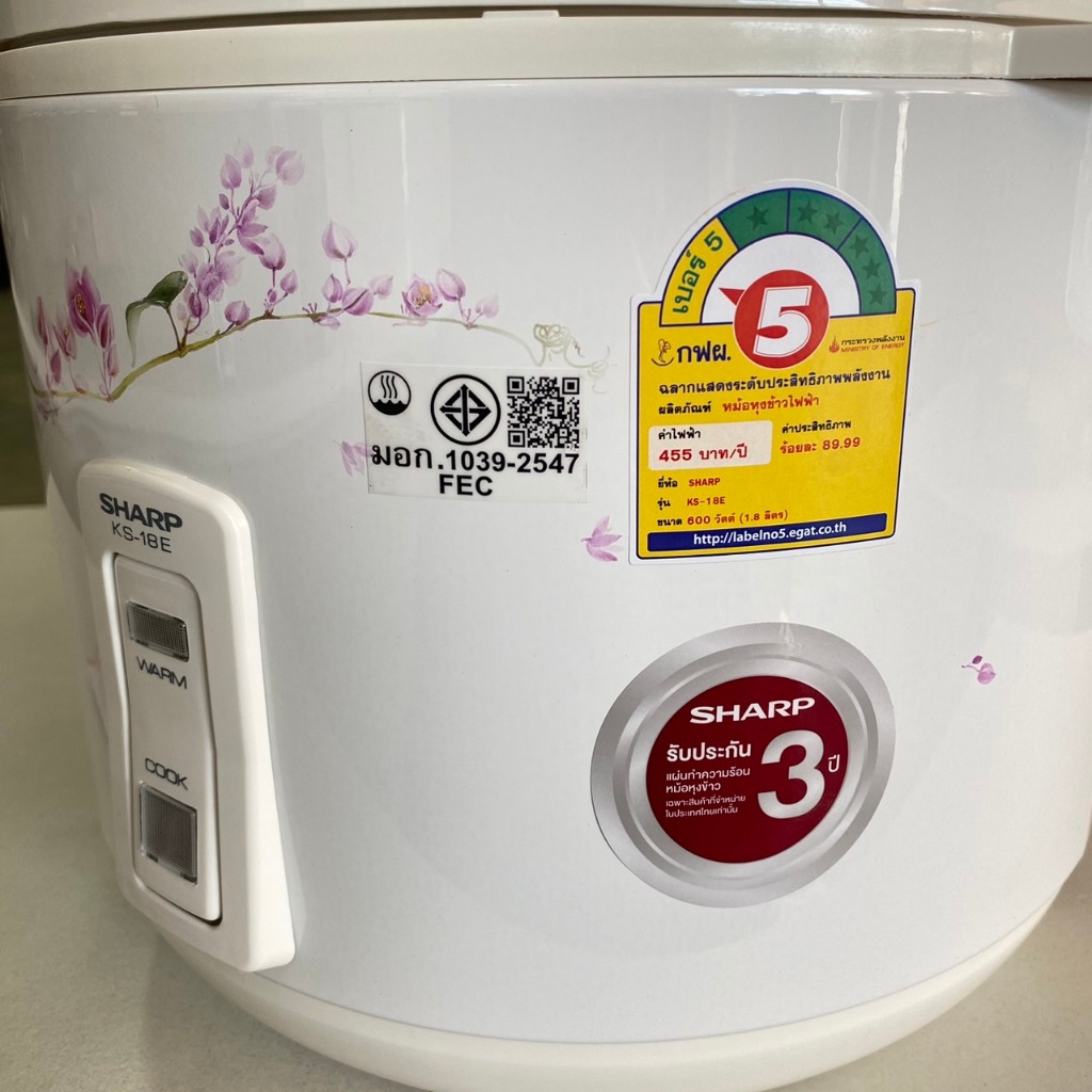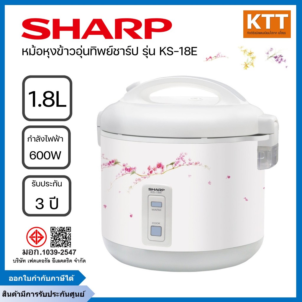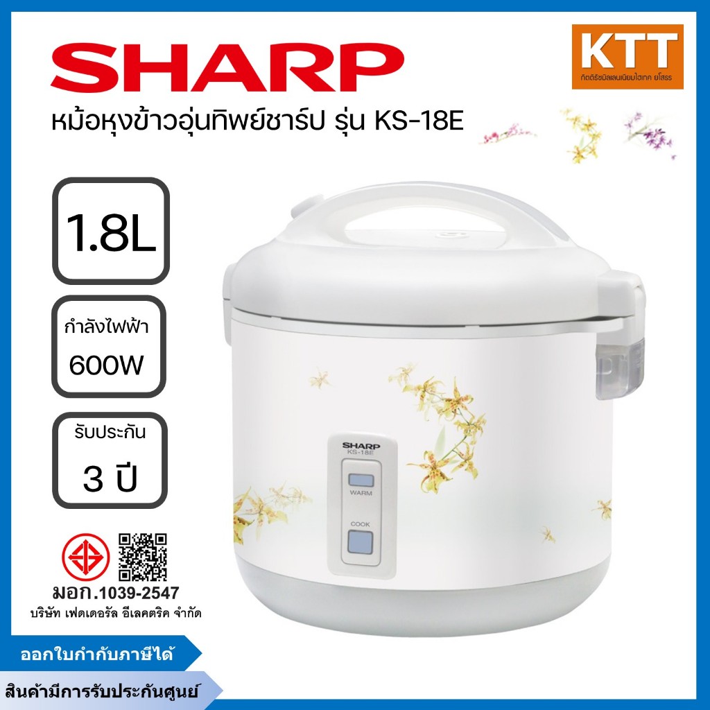 Sharp หม้อหุงข้าว อุ่นทิพย์ ชาร์ป ขนาด 1.8 ลิตร รุ่น KS-18E 600 วัตต์ คละลาย