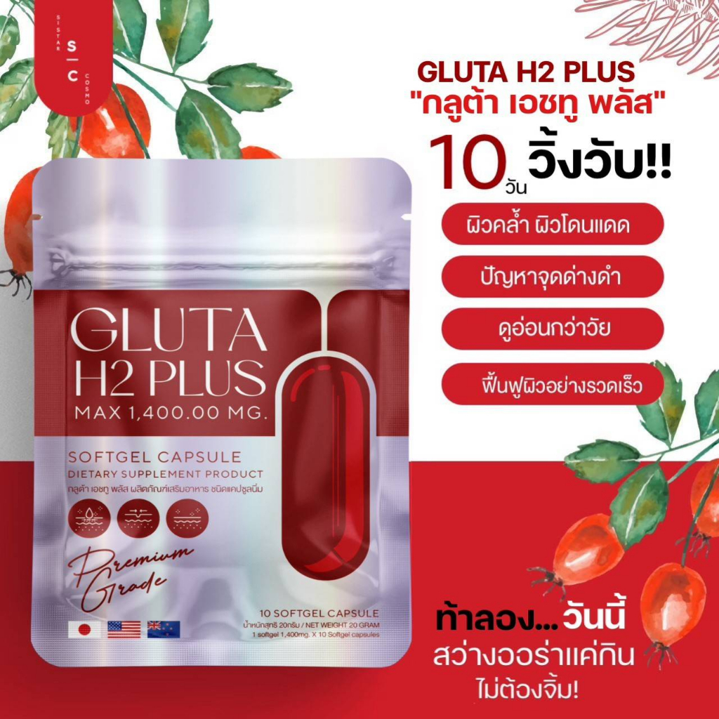 𝐆𝐥𝐮𝐭𝐚 𝐇𝟐 𝐏𝐋𝐔𝐒 กลูต้าหน้าใส 🍒 ช่วยฟื้นฟูให้ผิวหน้าขาวออร่า สว่างใส