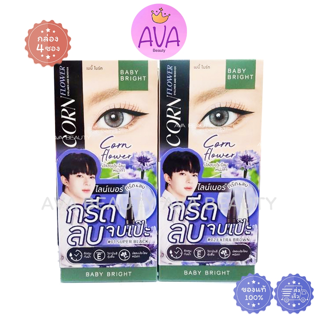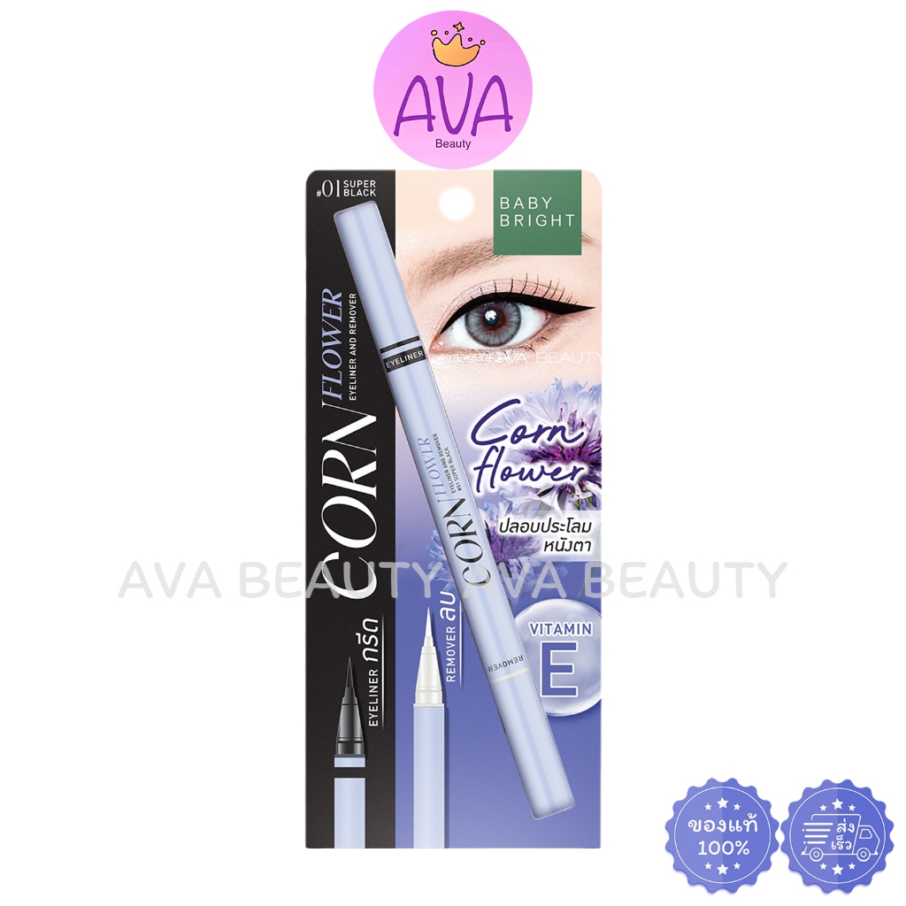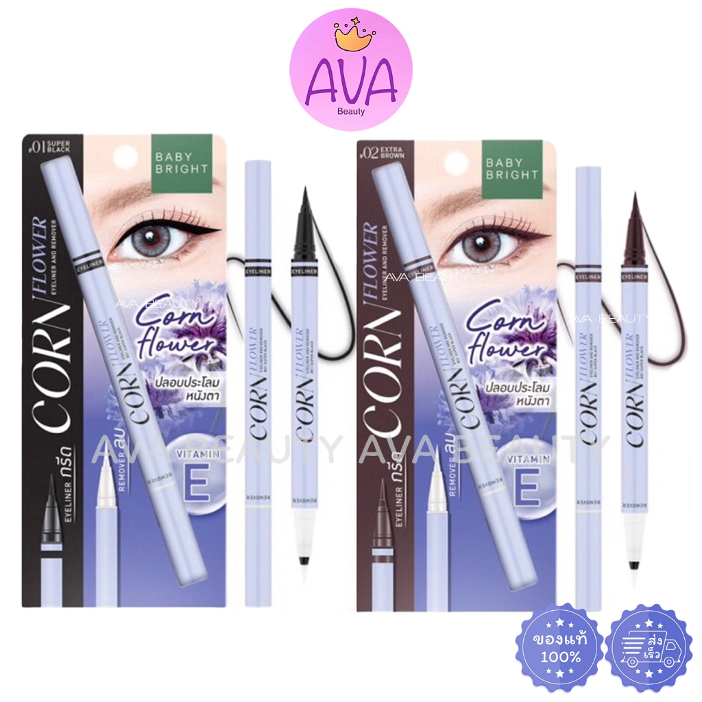(แท่ง) Baby Bright Corn Flower Eyeliner&Remover เบบี้ ไบร์ท คอร์นฟลาวเวอร์ กล่องฟ้า มี 2 สี