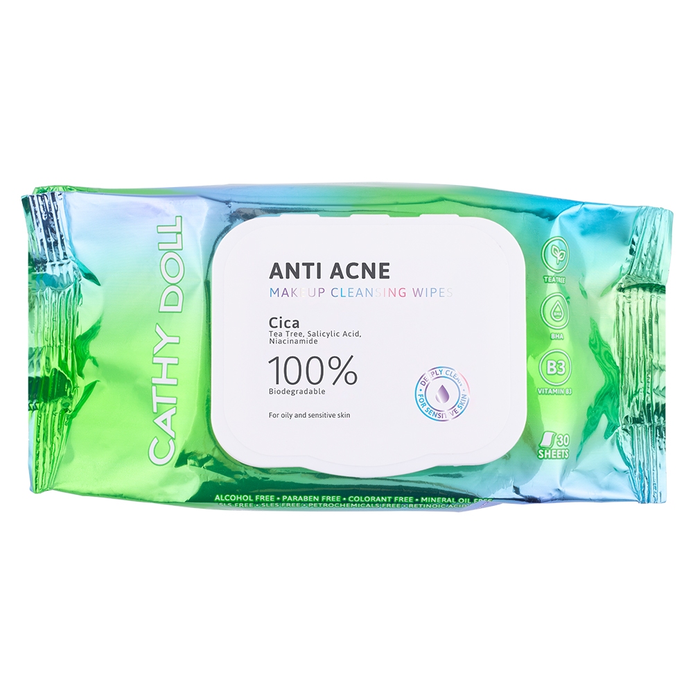Cathy Doll แอนตี้แอคเน่เมคอัพคลีนซิ่งไวพส์ 30แผ่น เคที่ดอลล์