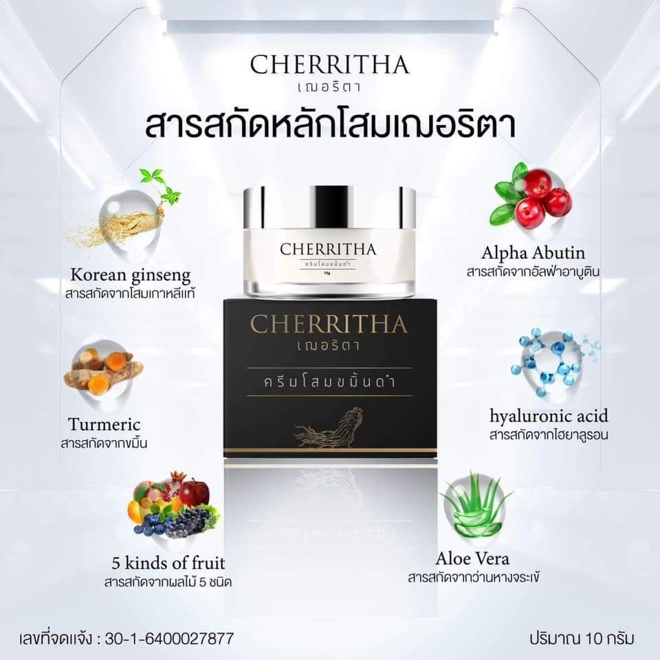 โสมเฌอริตา ครีมโสมขมิ้นดำ Cherritha 10 กรัม